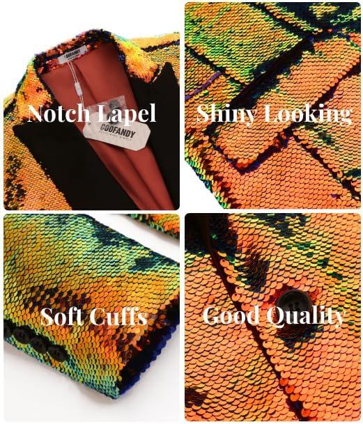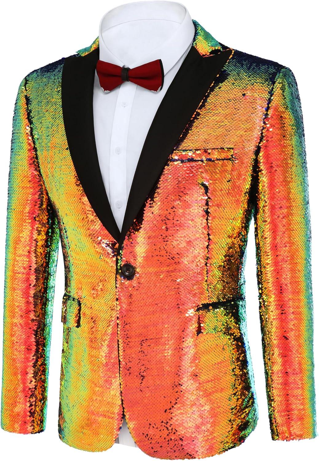 COOFANDY Mens Sequin Blazer Tuxedo Party Prom Wedding Tuxedo One Button Jacket(Bright Gold)