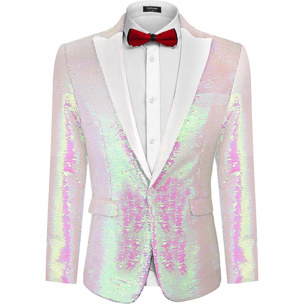 imageCOOFANDY Mens Sequin Blazer Tuxedo Party Prom Wedding Tuxedo One Button JacketPinkwhite