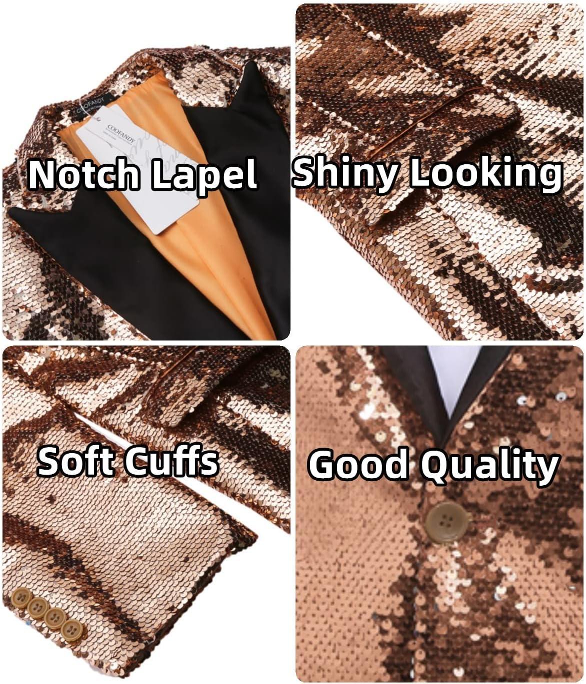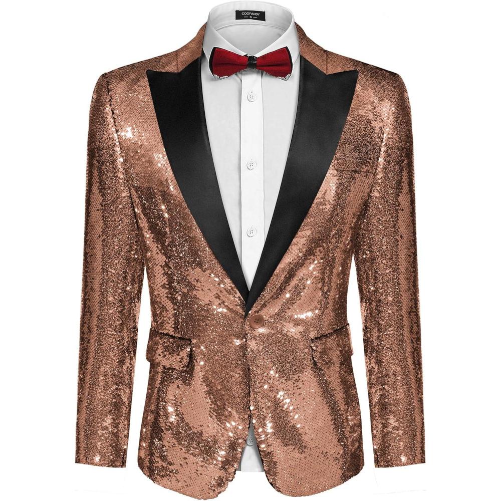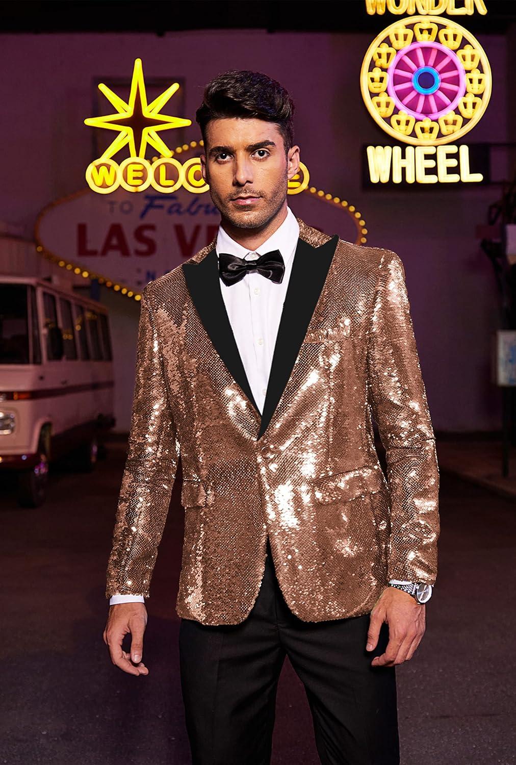 COOFANDY Mens Sequin Blazer Tuxedo Party Prom Wedding Tuxedo One Button Jacket(Rose Gold)