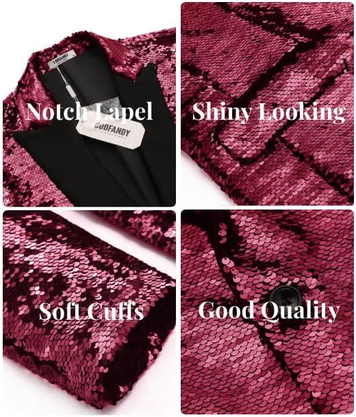 COOFANDY Mens Sequin Blazer Tuxedo Party Prom Wedding Tuxedo One Button Jacket(Pink)