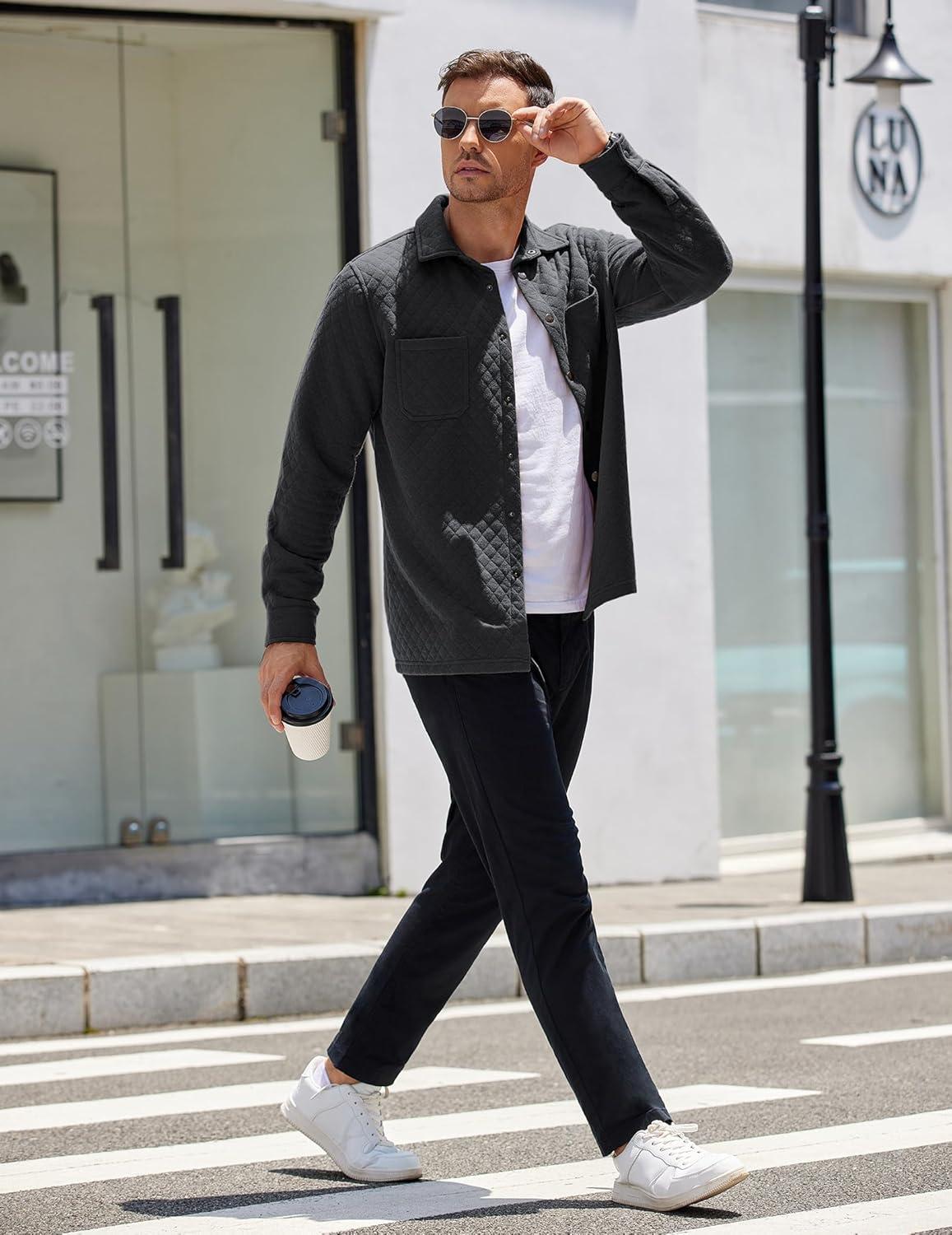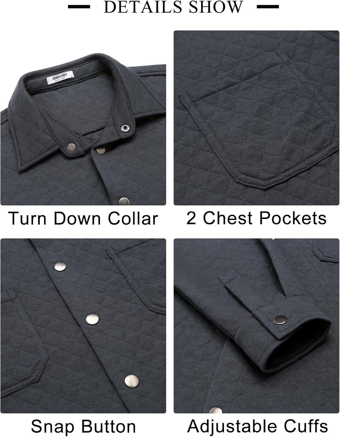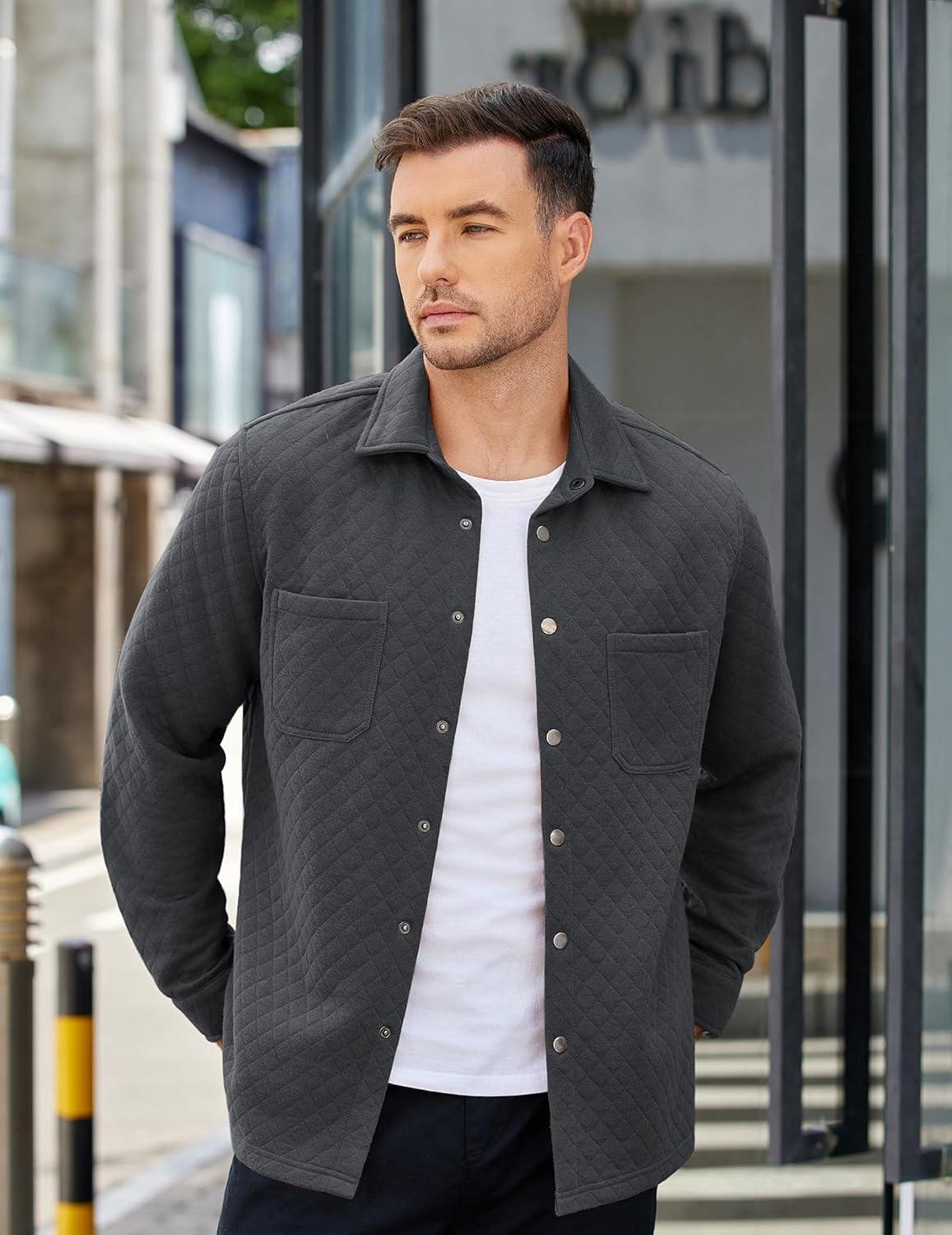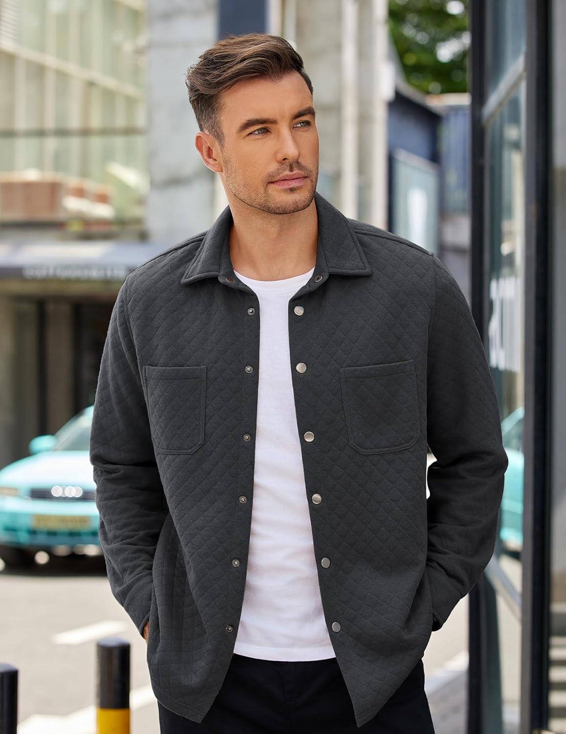 Get your hands on our newest COOFANDY Mens Shacket Long Sleeve Shirt Jacket with Pockets Lightweight Quilted Overshirt(Dark Grey) and enjoy a limited-time discount offer.