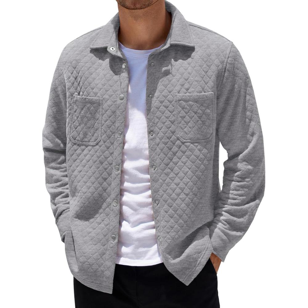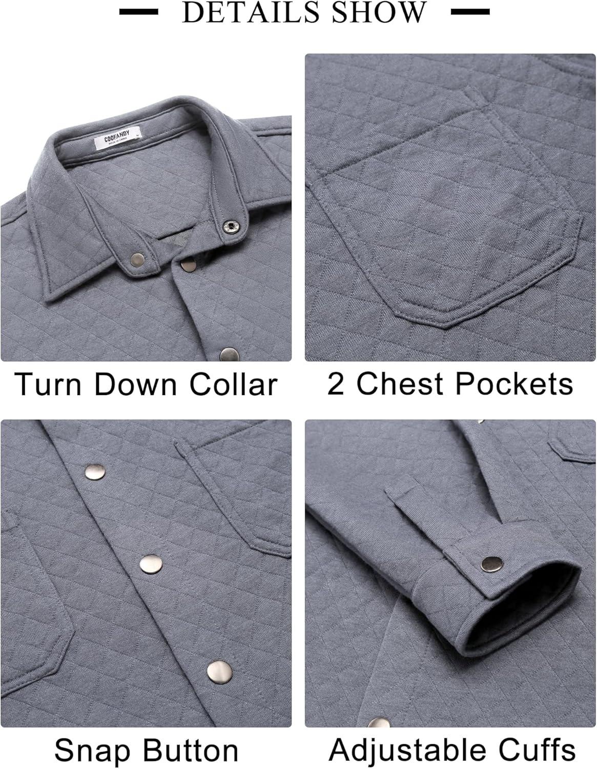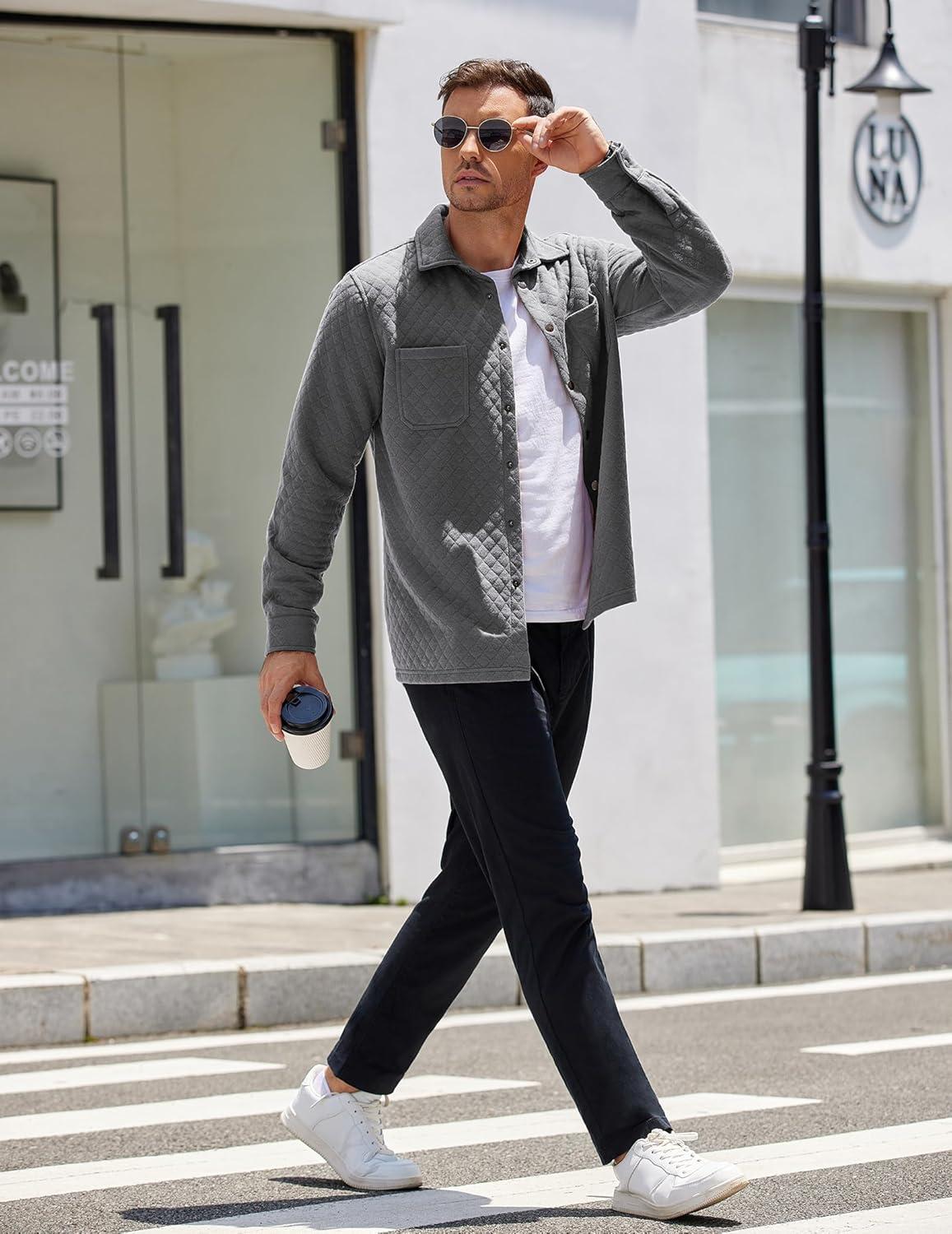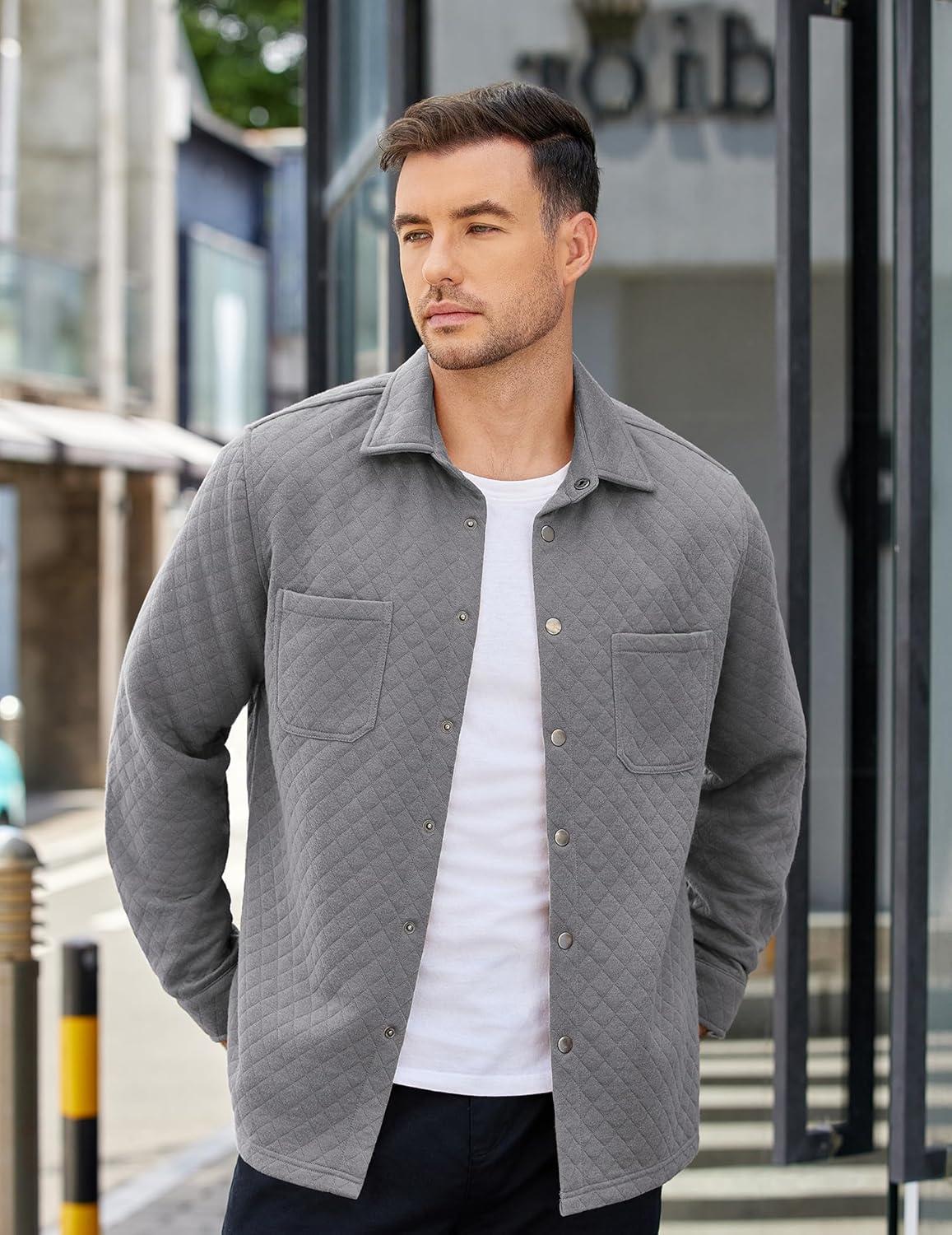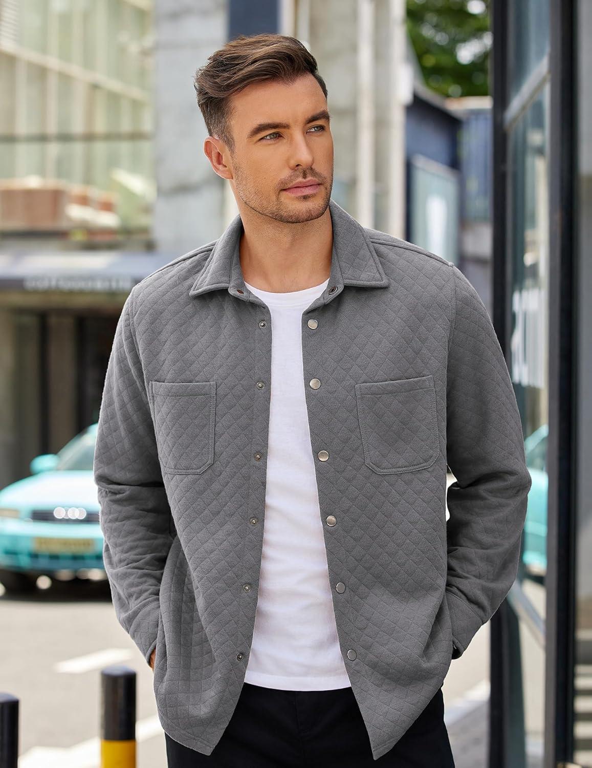 COOFANDY Mens Shacket Long Sleeve Shirt Jacket with Pockets Lightweight Quilted Overshirt(Light Grey)