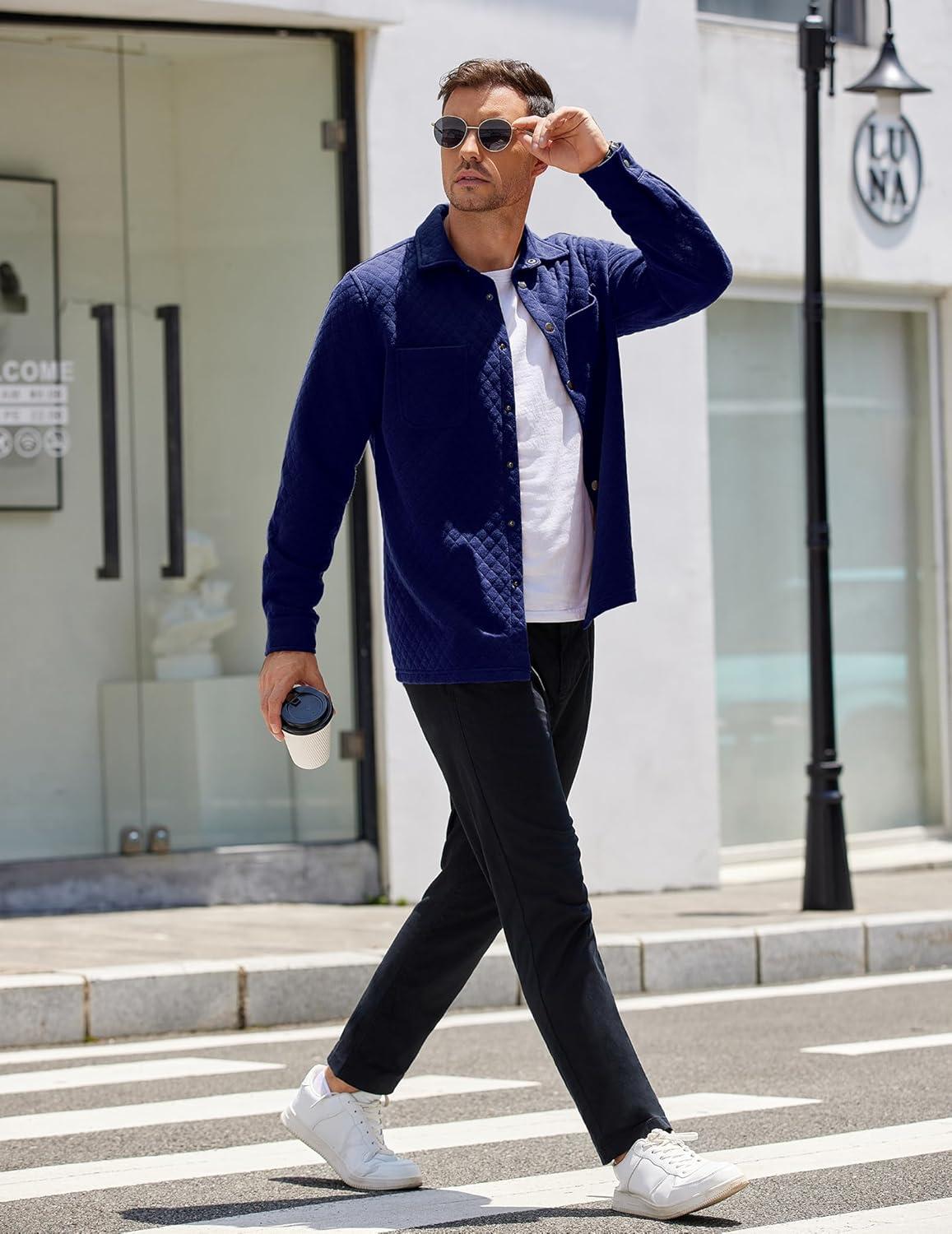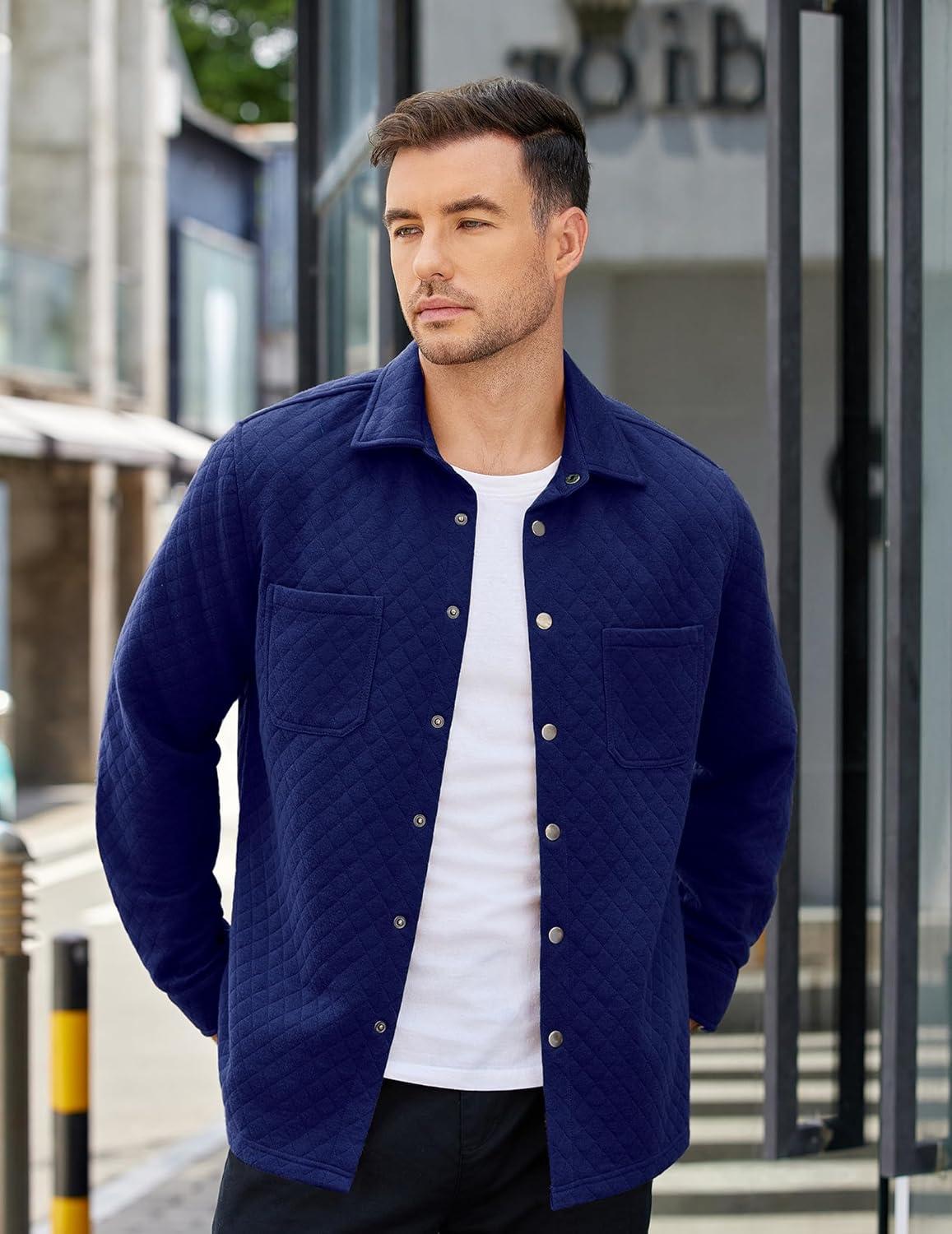 COOFANDY Mens Shacket Long Sleeve Shirt Jacket with Pockets Lightweight Quilted Overshirt(Navy Blue)