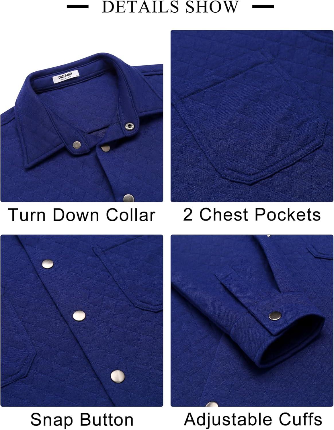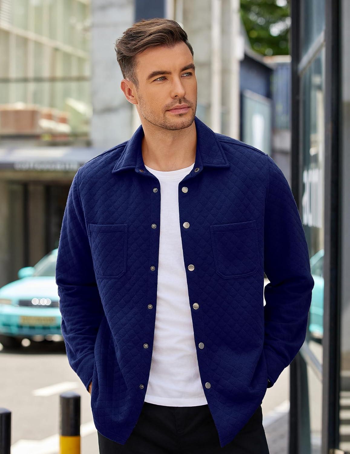 COOFANDY Mens Shacket Long Sleeve Shirt Jacket with Pockets Lightweight Quilted Overshirt(Dark Blue)