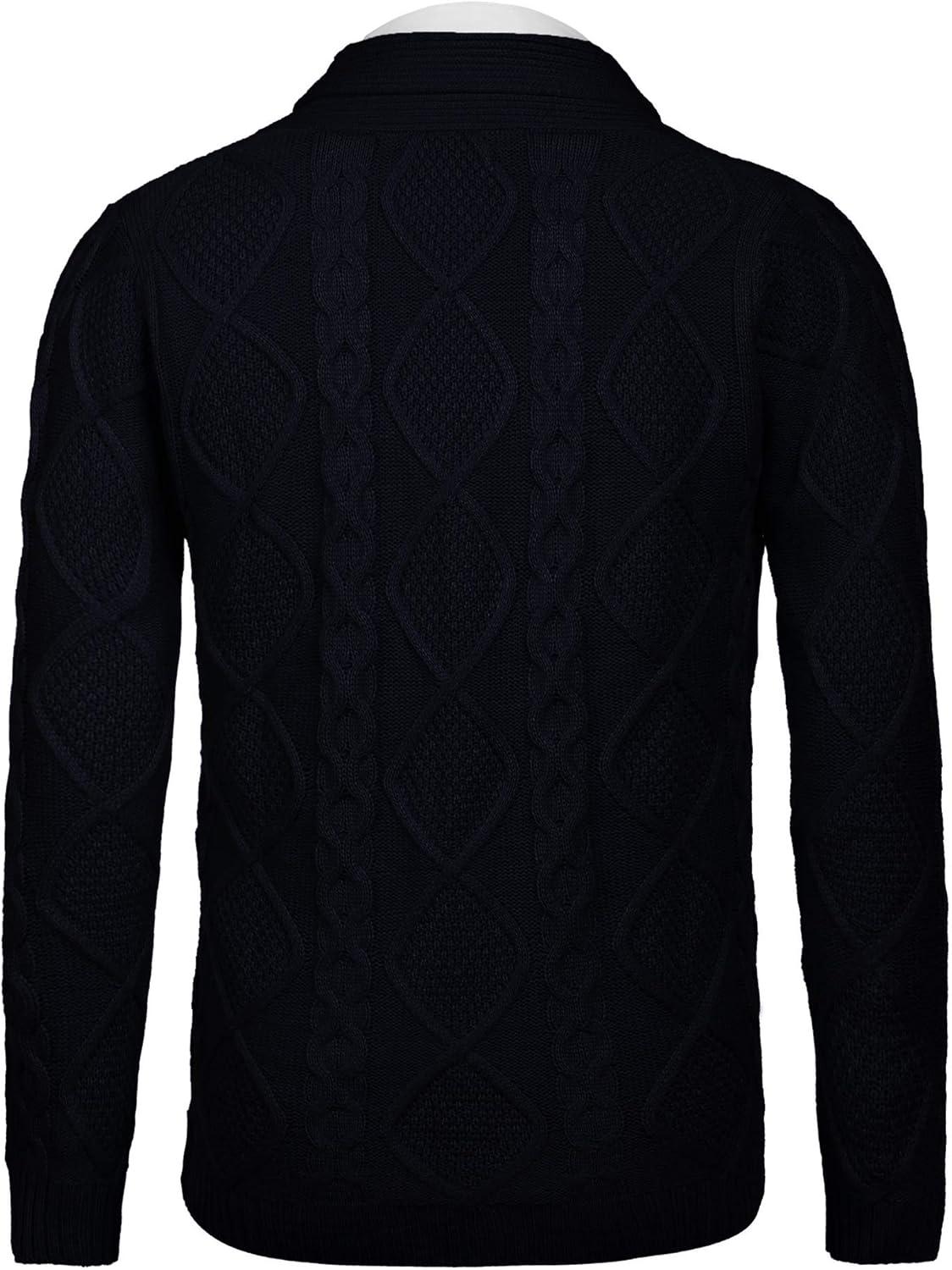 COOFANDY Mens Shawl Collar Cardigan Sweater Slim Fit Button Down Cable Knitted Sweater with Pockets(Navy Blue)