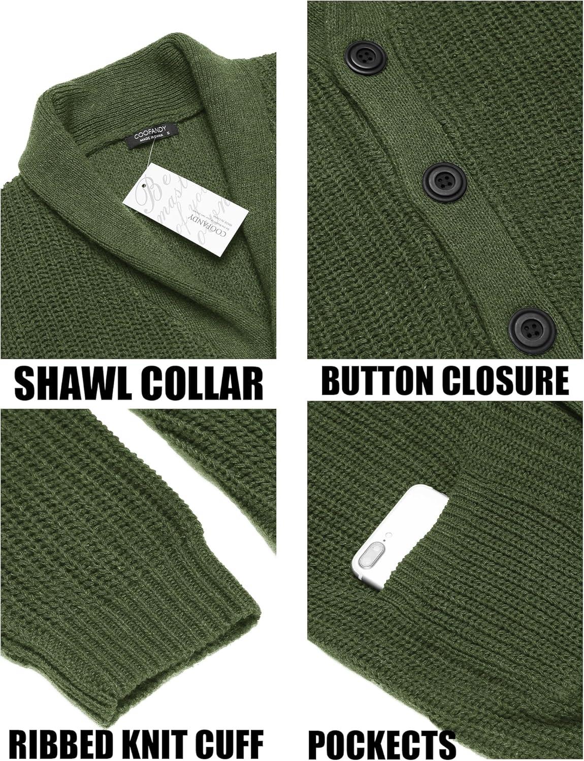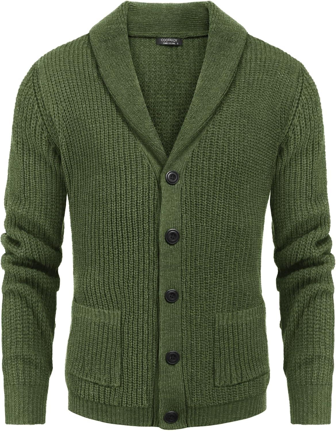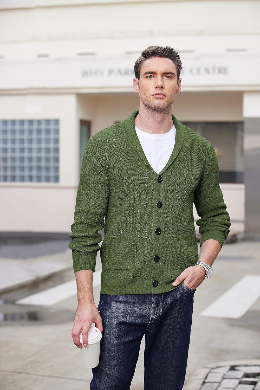 COOFANDY Men's Shawl Collar Cardigan Sweater Slim Fit Cable Knit Button up Sweater with Pockets(Army Green)