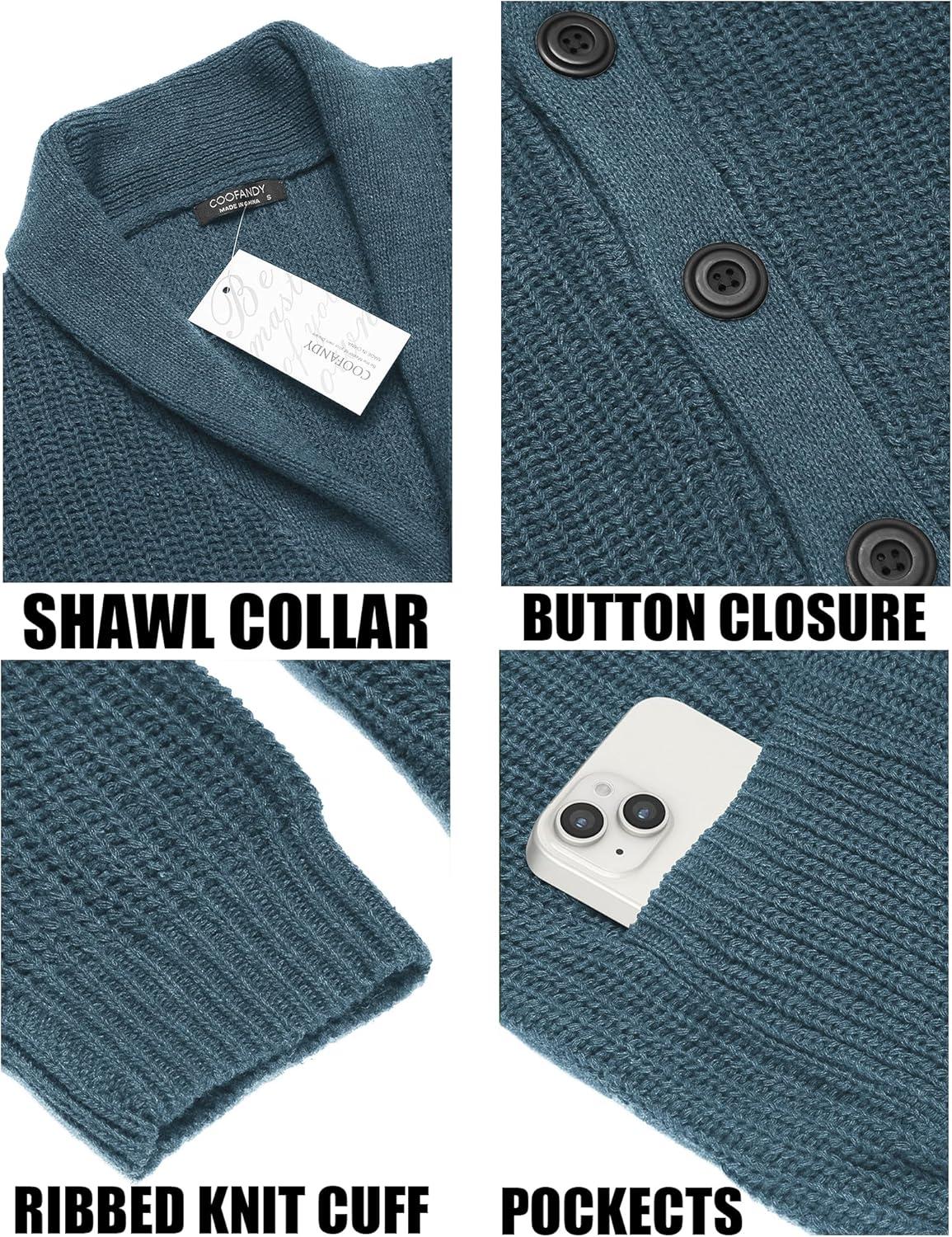 Don’t miss out on our limited-time offer: buy COOFANDY Men’s Shawl Collar Cardigan Sweater Slim Fit Cable Knit Button up Sweater with Pockets(Blue Heather), get a free {accessory}!
