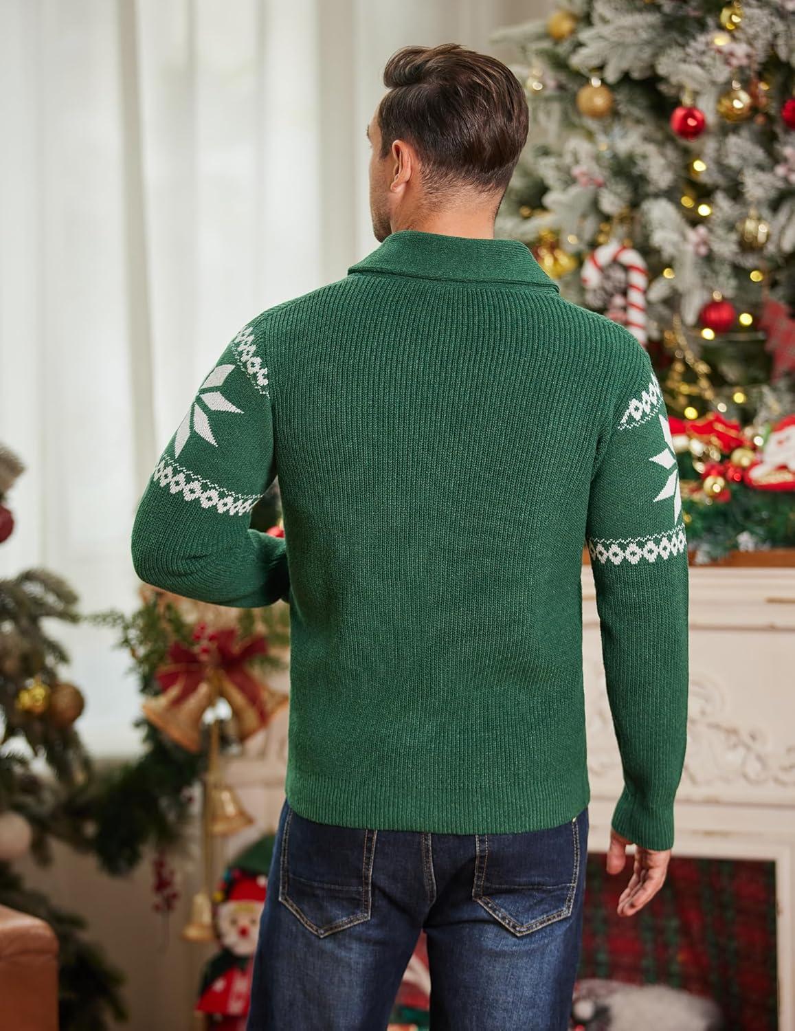 imageCOOFANDY Mens Shawl Collar Cardigan Sweater Slim Fit Cable Knit Button up Sweater with PocketsChristmas GreenWhite