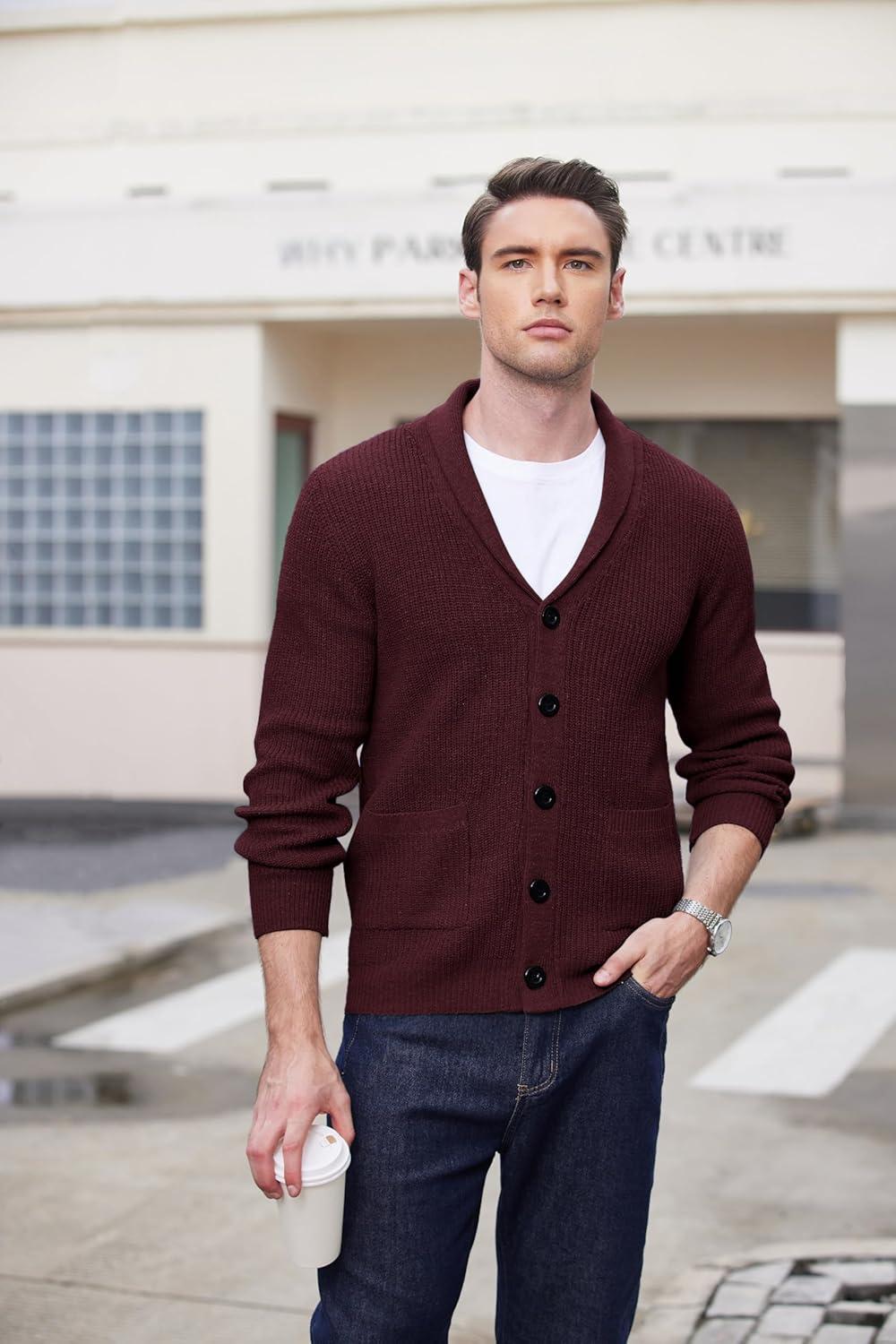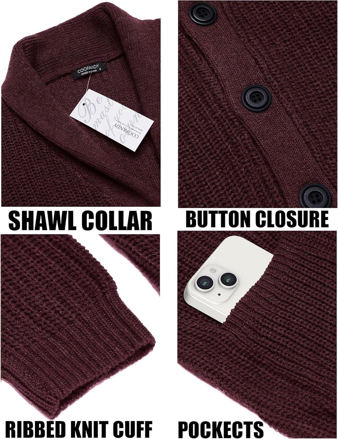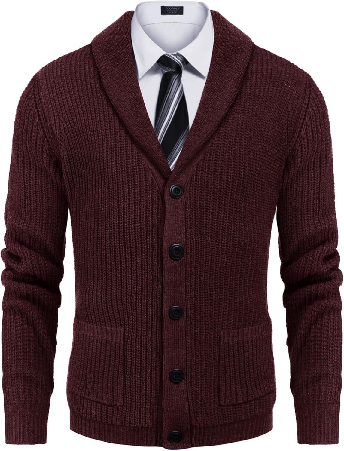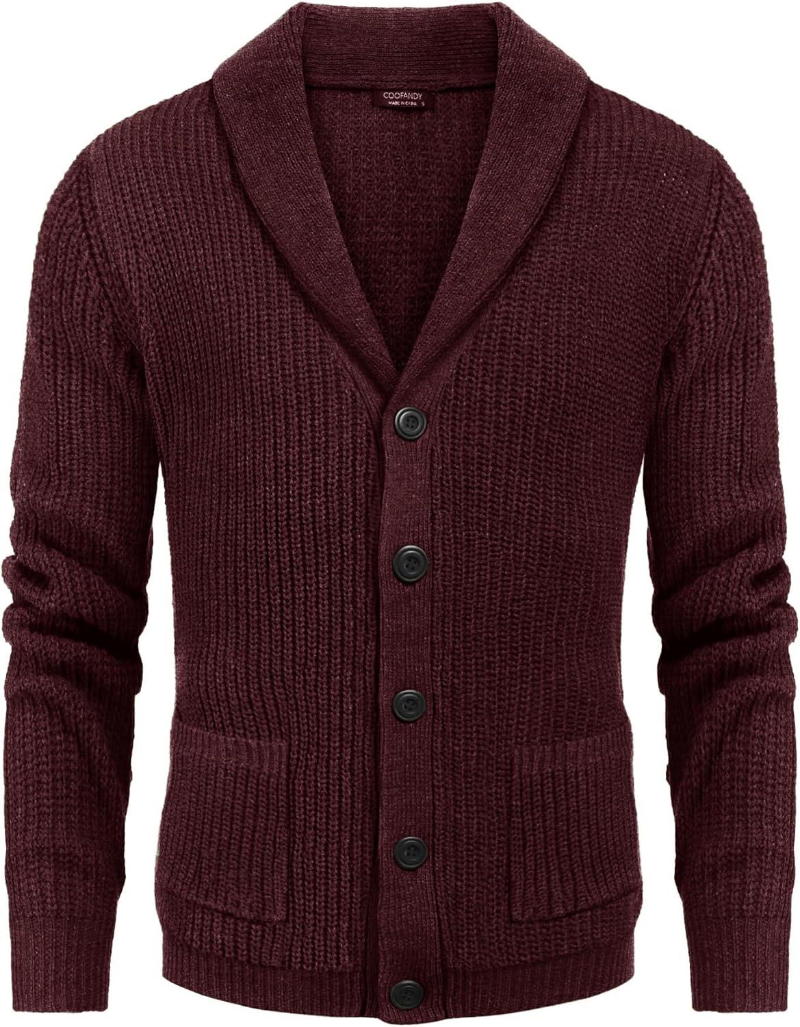 Get the COOFANDY Men’s Shawl Collar Cardigan Sweater Slim Fit Cable Knit Button up Sweater with Pockets(Dark Red) you’ve been eyeing at a discounted price during our seasonal sale event.