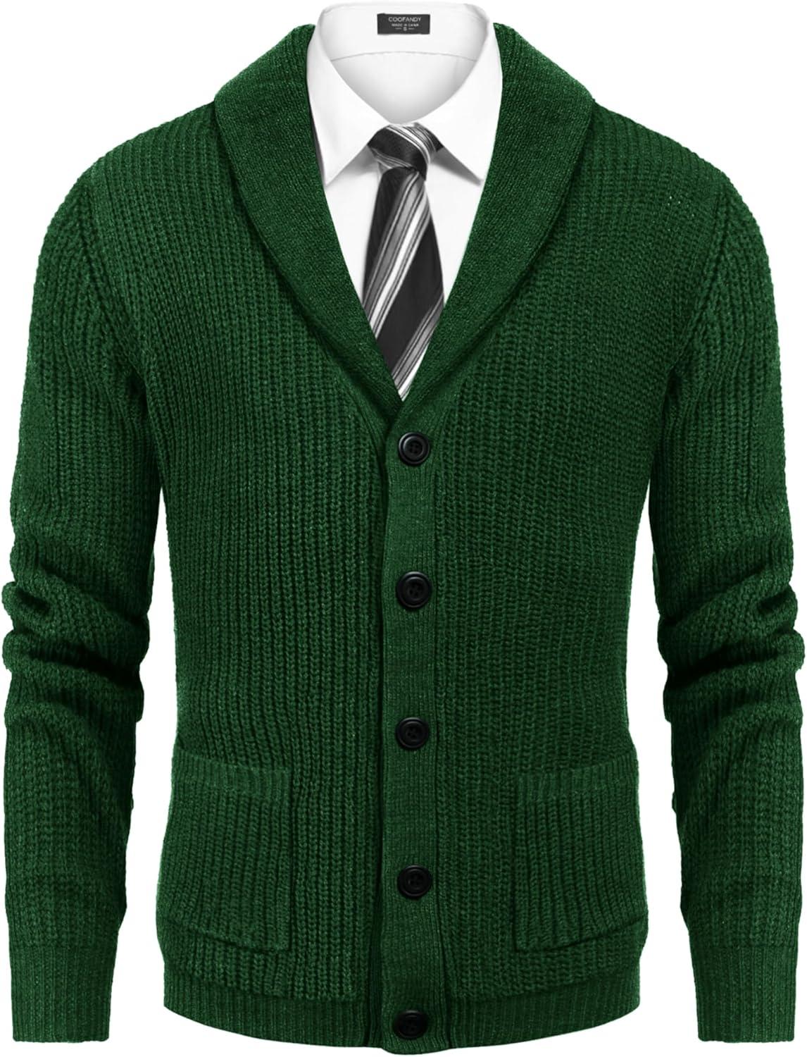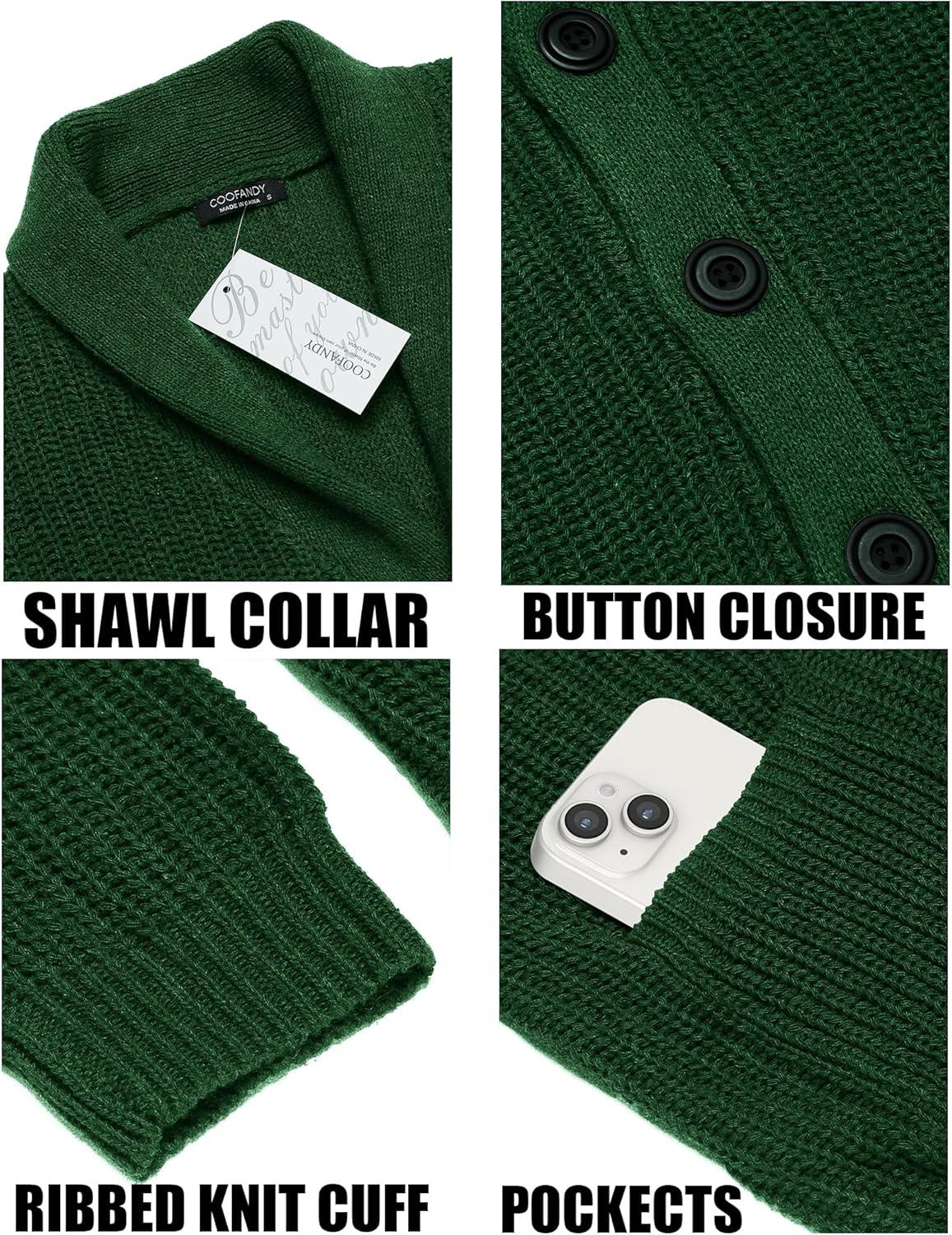 Don’t miss out on our limited-time offer: buy COOFANDY Men’s Shawl Collar Cardigan Sweater Slim Fit Cable Knit Button up Sweater with Pockets(Light Green), get a free {accessory}!