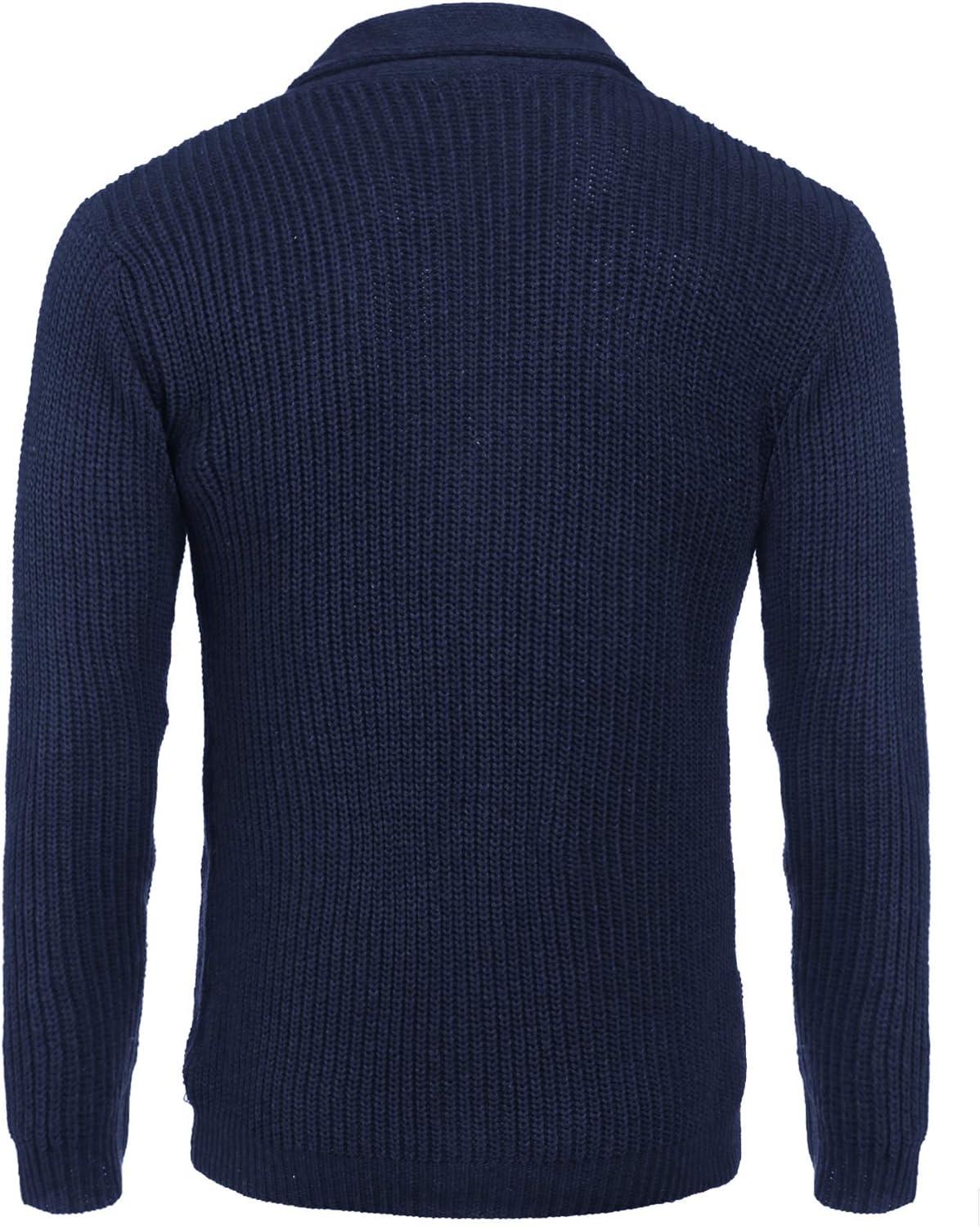 COOFANDY Men's Shawl Collar Cardigan Sweater Slim Fit Cable Knit Button up Sweater with Pockets(Snorkel Blue)