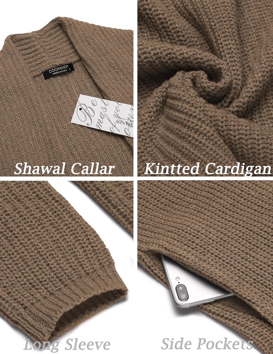 COOFANDY Mens Shawl Collar Long Cardigan Knit Ruffle Fashion Sweater Drape Cape(Brown)
