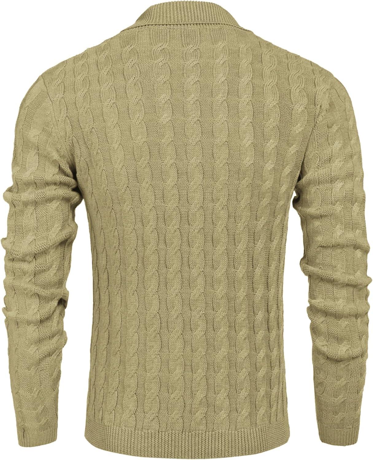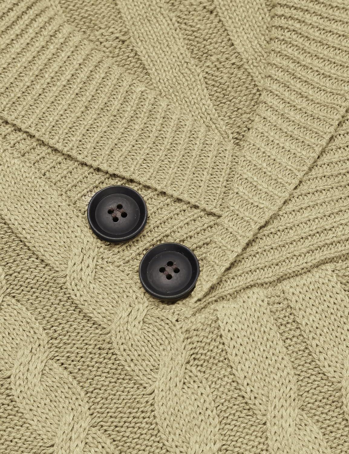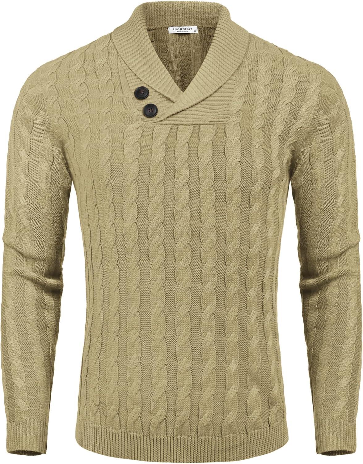 COOFANDY Men's Shawl Collar Pullover Sweater Slim Fit Casual Button Cable Knit Sweaters(Dark Khaki)