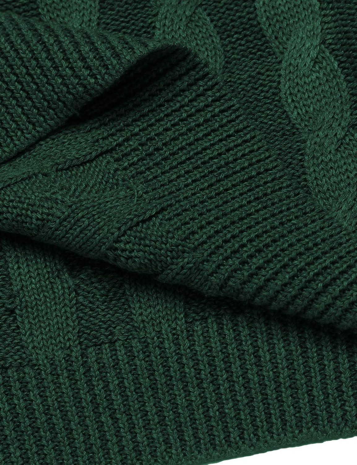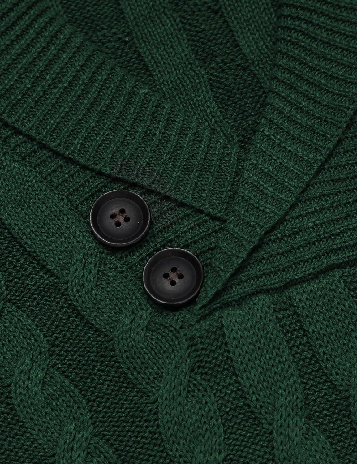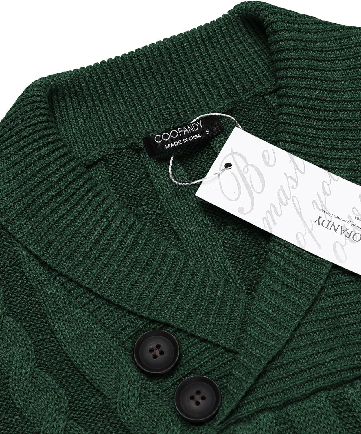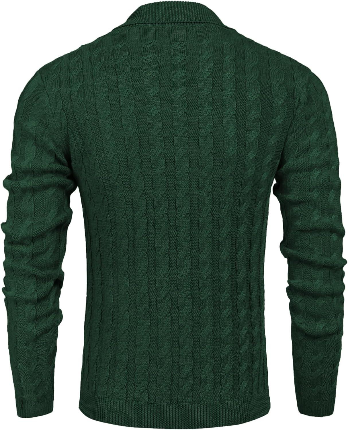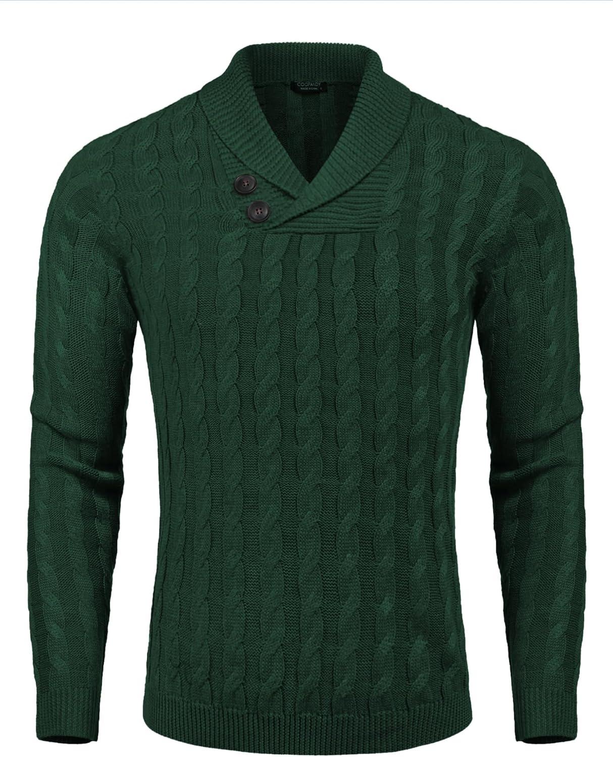 COOFANDY Men's Shawl Collar Pullover Sweater Slim Fit Casual Button Cable Knit Sweaters(Green)