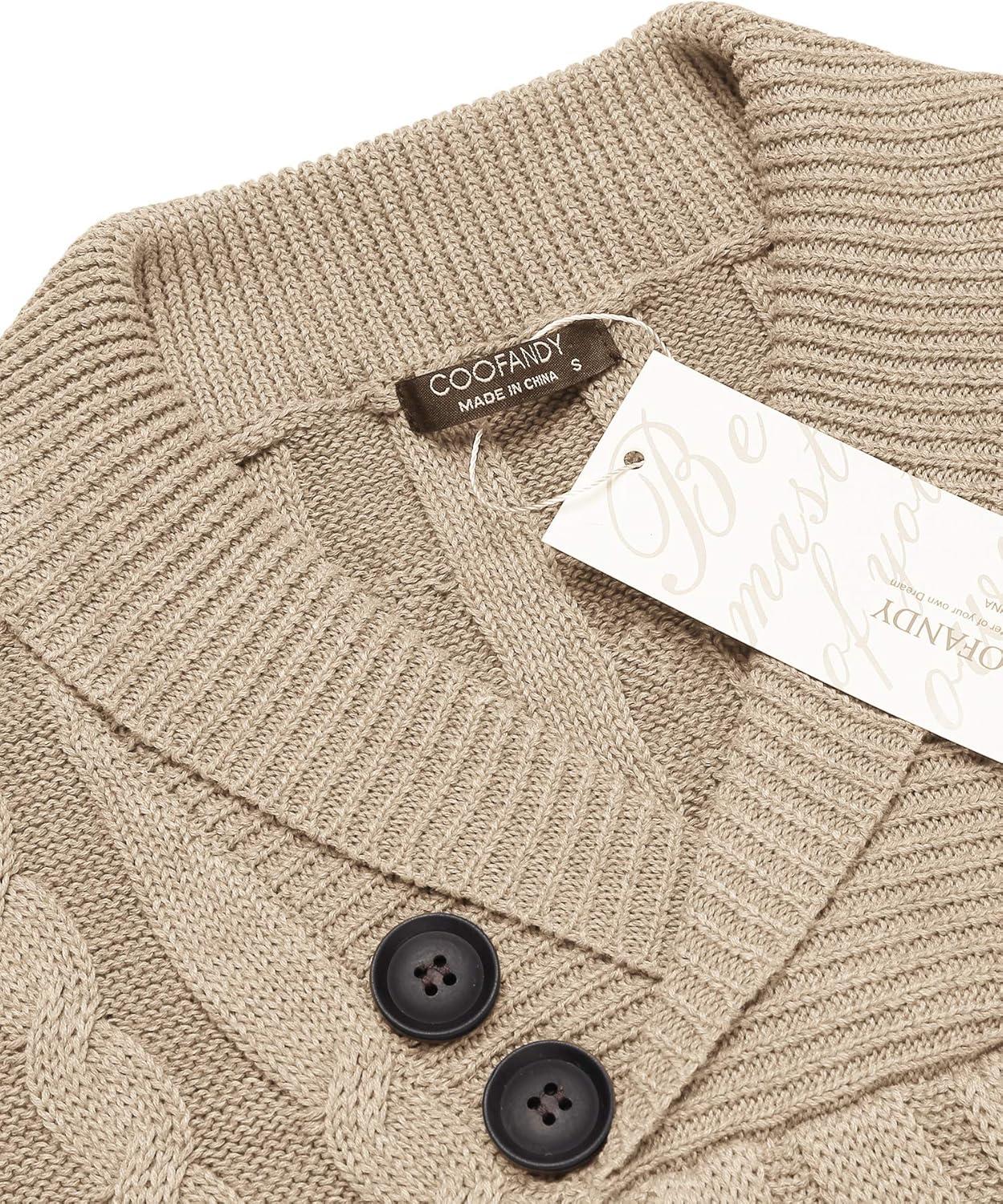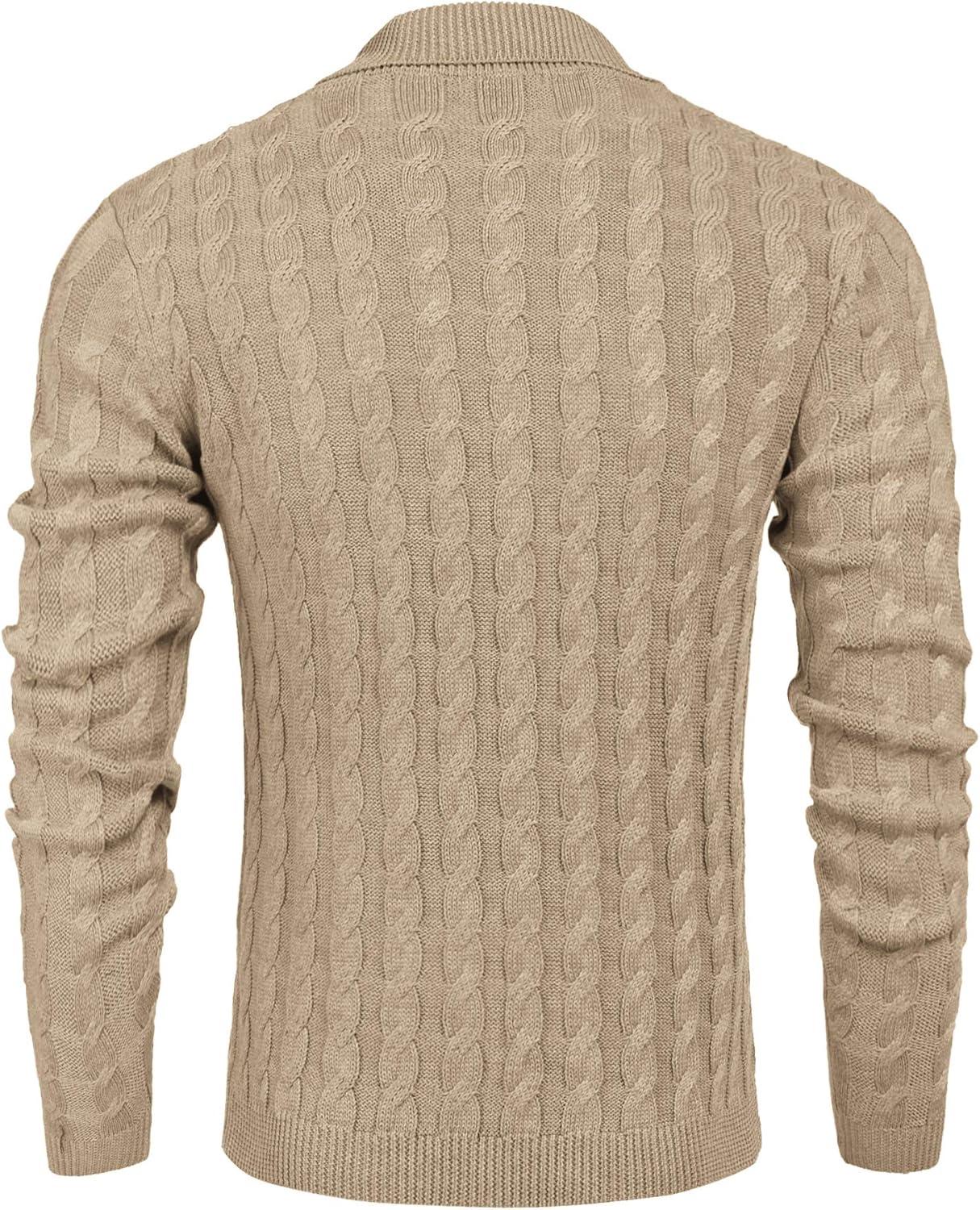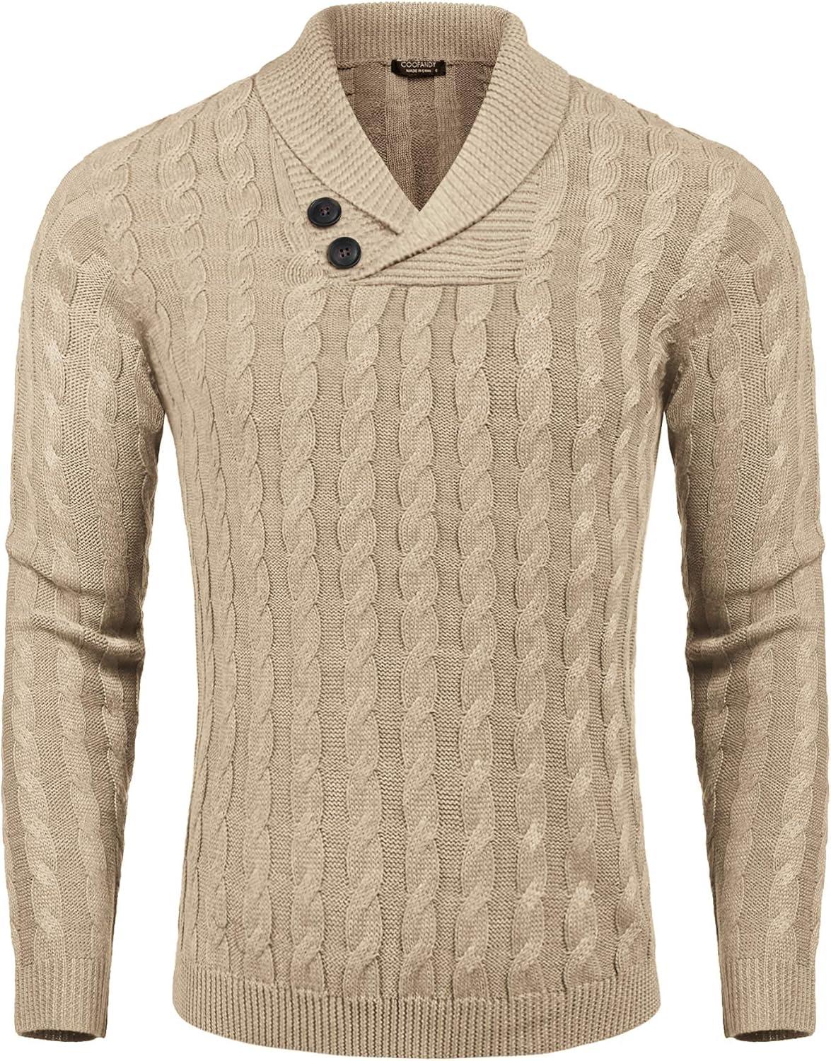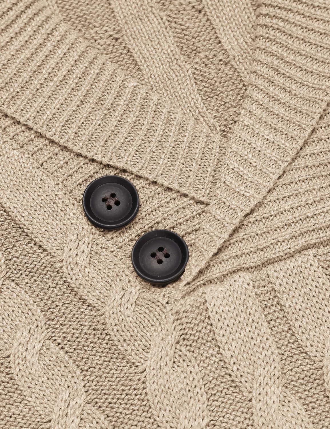 COOFANDY Men's Shawl Collar Pullover Sweater Slim Fit Casual Button Cable Knit Sweaters(Khaki)