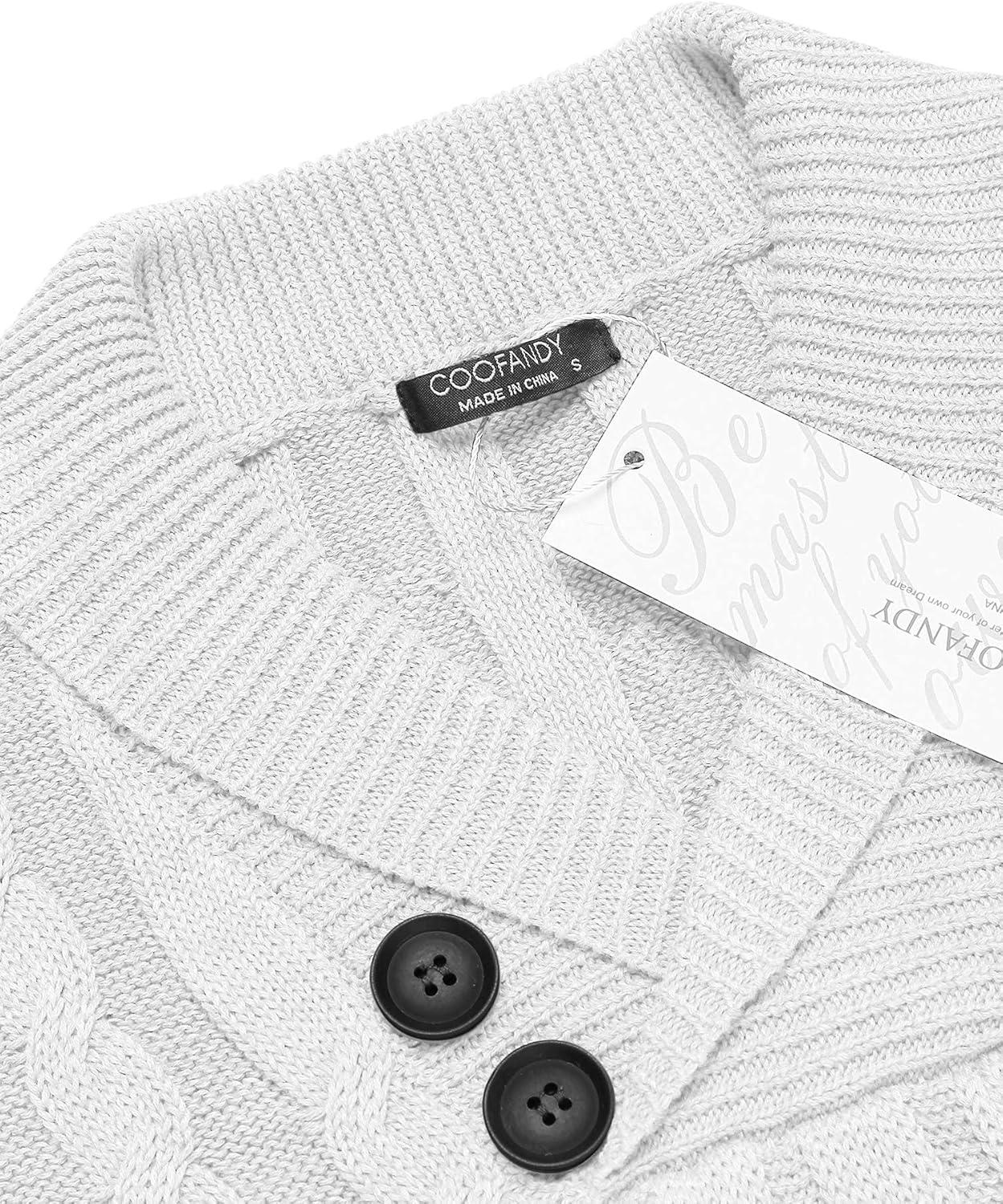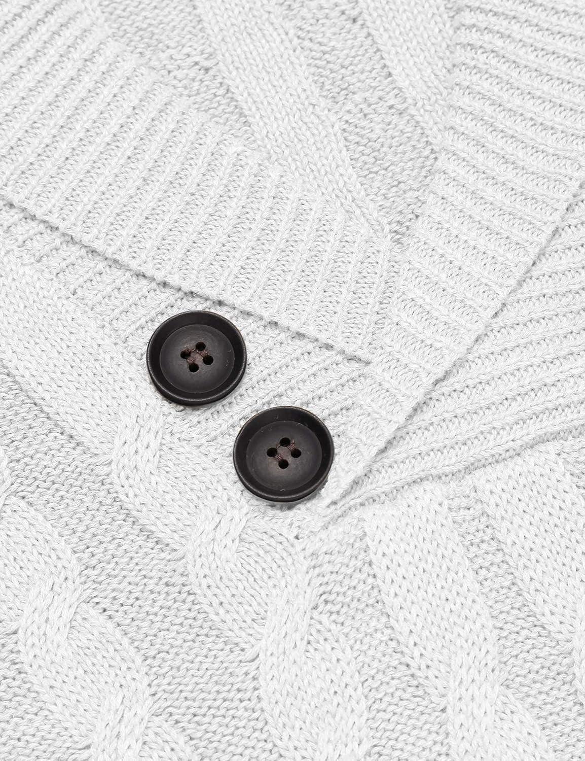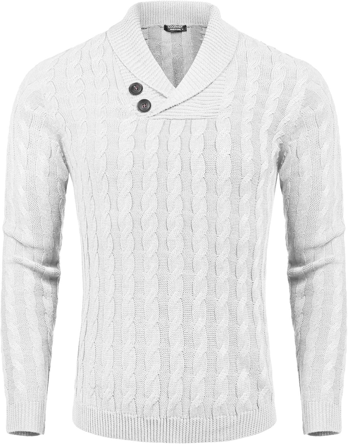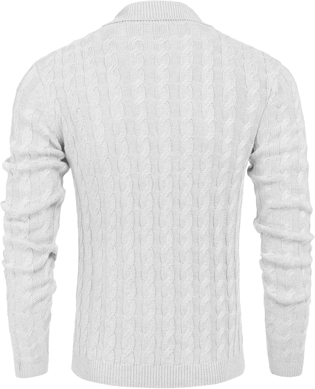 COOFANDY Men's Shawl Collar Pullover Sweater Slim Fit Casual Button Cable Knit Sweaters(White)