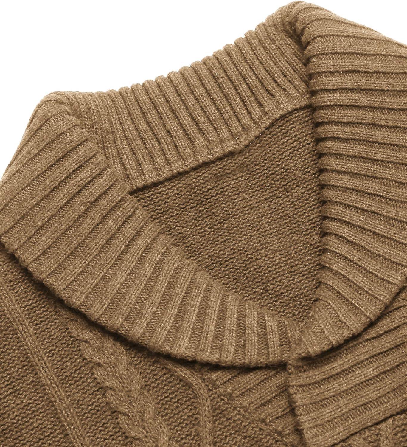 COOFANDY Men’s Shawl Collar Sweaters V-Neck Relaxed Fit Cable Pullovers(Khaki)