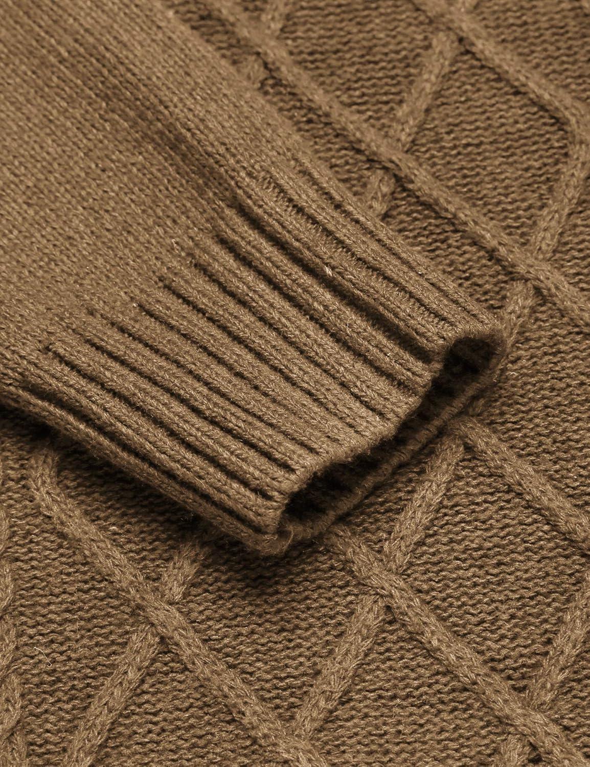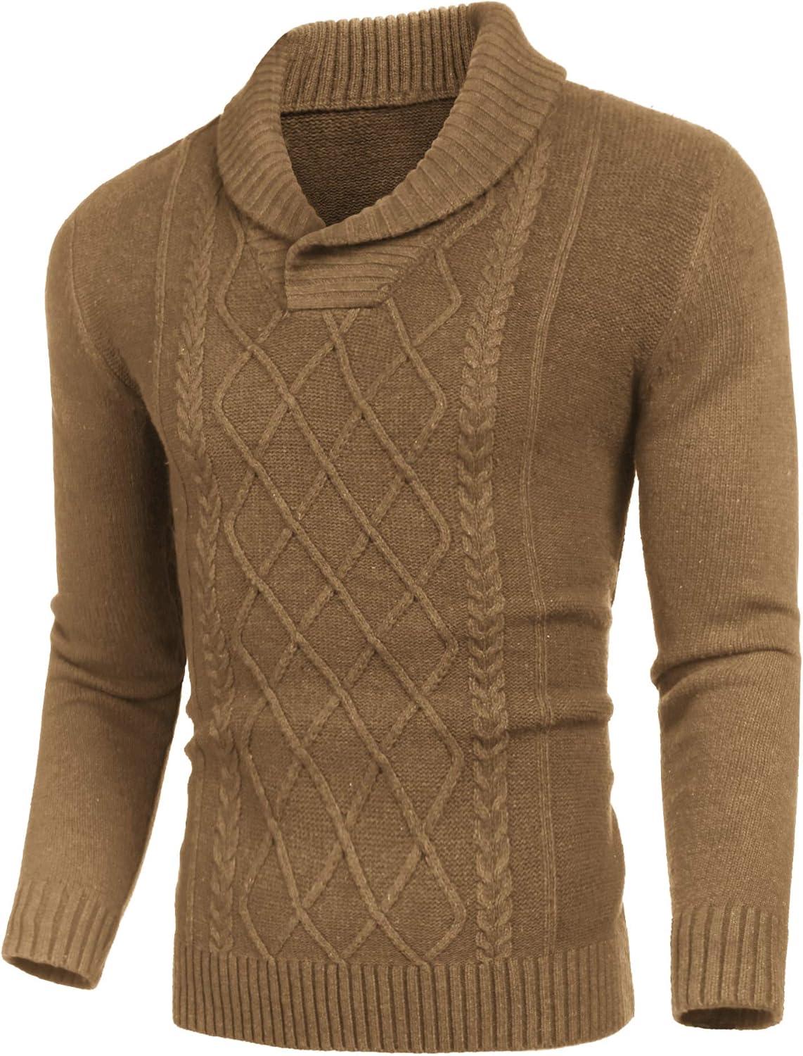COOFANDY Men's Shawl Collar Sweaters V-Neck Relaxed Fit Cable Pullovers(Khaki)