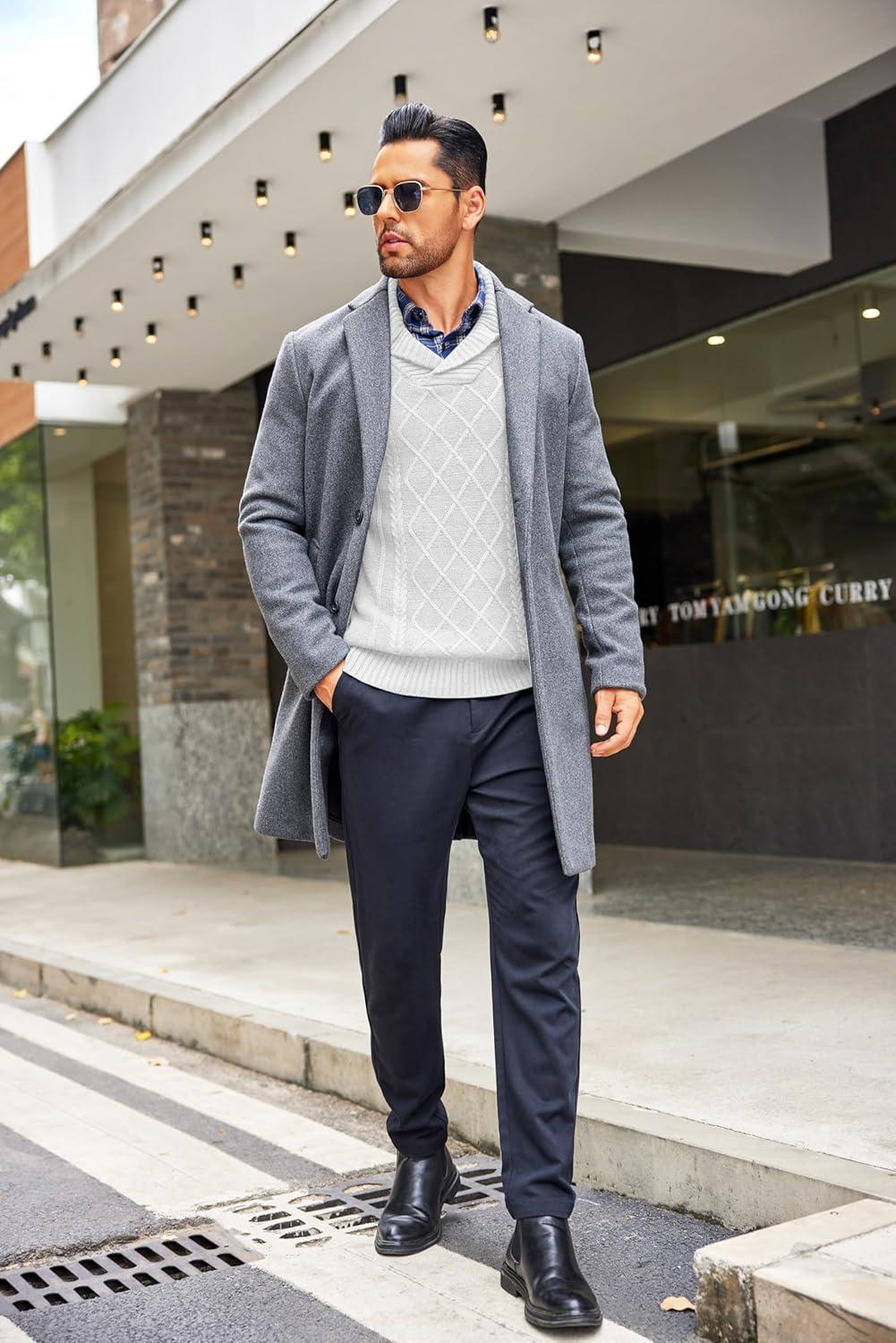 COOFANDY Men’s Shawl Collar Sweaters V-Neck Relaxed Fit Cable Pullovers(White)