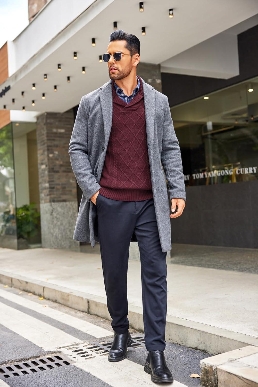 Be the first to review “COOFANDY Men’s Shawl Collar Sweaters V-Neck Relaxed Fit Cable Pullovers(Wine Red)”