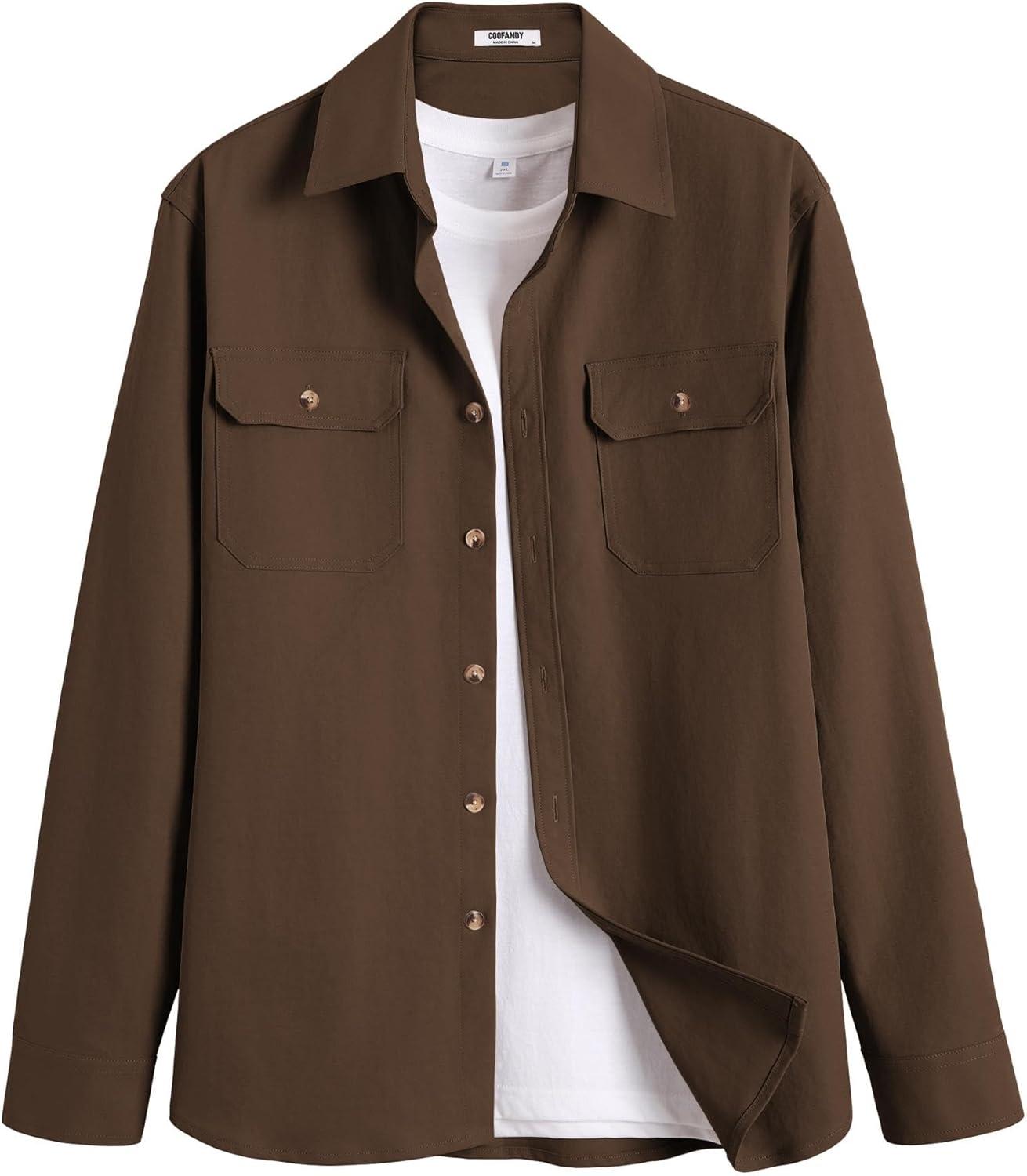 COOFANDY Mens Shirt Jacket Casual Button Up Shirts Long Sleeve Lightweight Shacket with Flap Pockets(Brown)