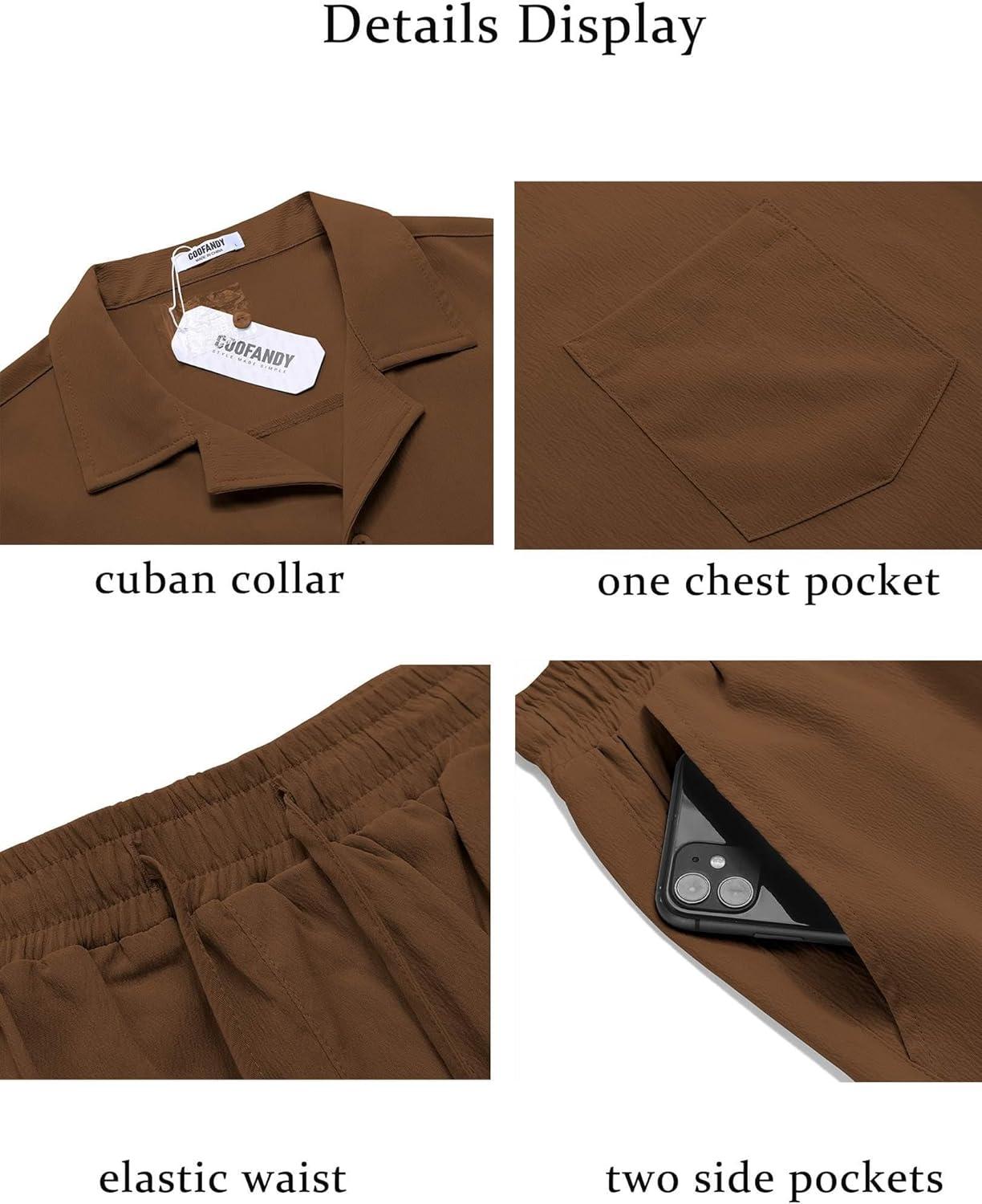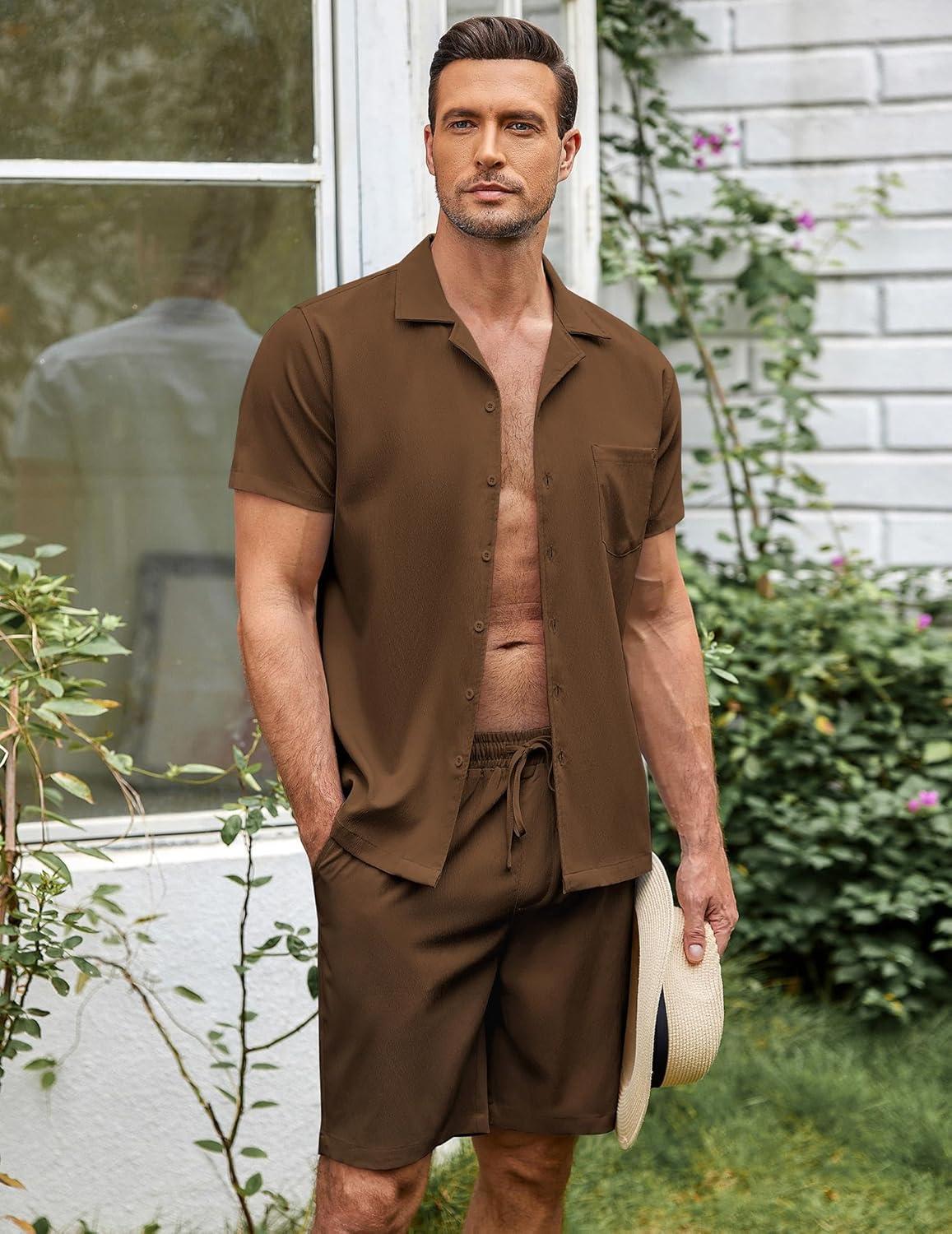 COOFANDY Mens Short Sets 2 Piece Summer Beach Outfits Short Sleeve Shirts and Shorts Sets for Men(Brown)