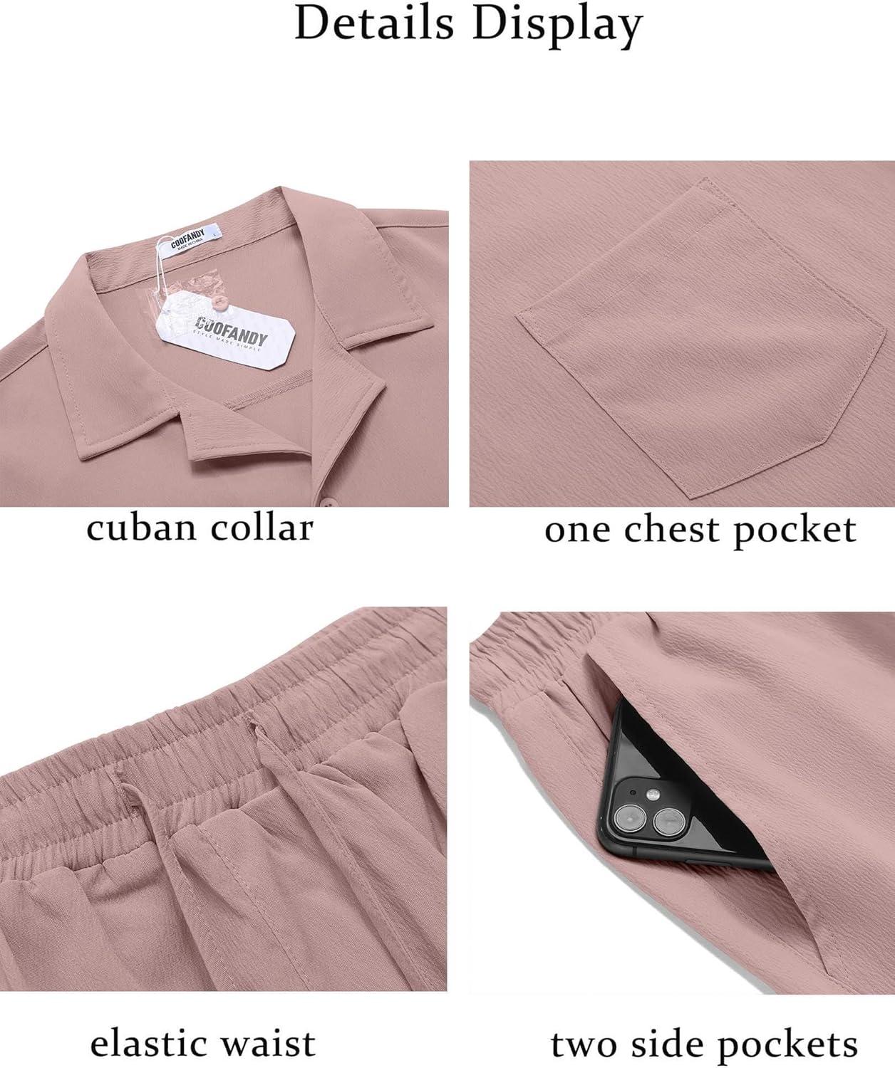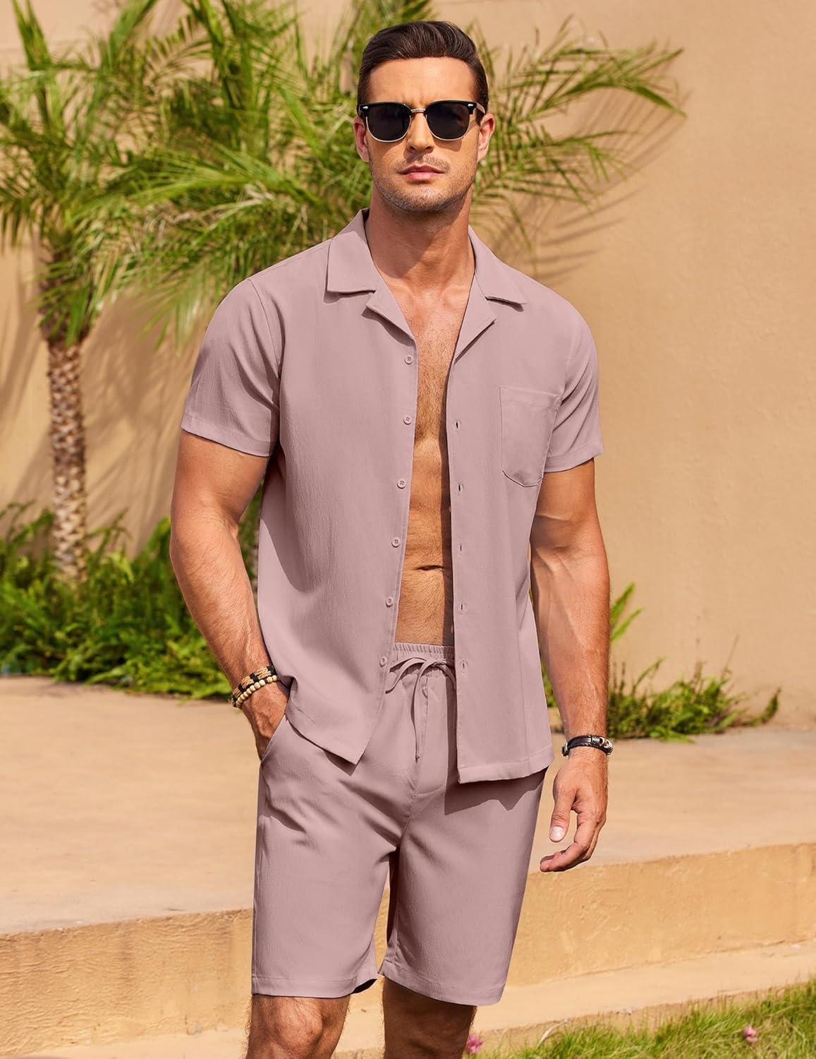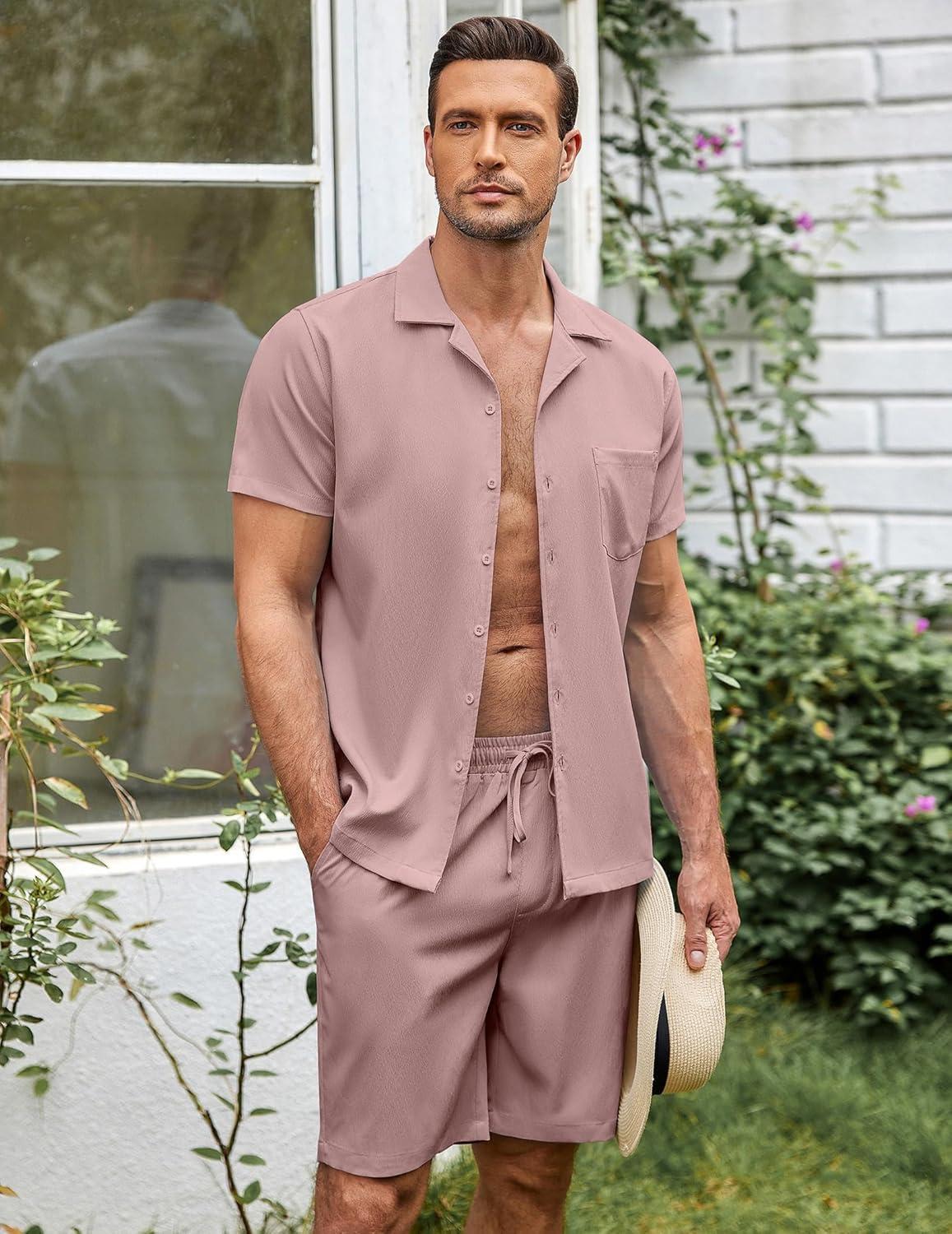 COOFANDY Mens Short Sets 2 Piece Summer Beach Outfits Short Sleeve Shirts and Shorts Sets for Men(Dusty Rose)