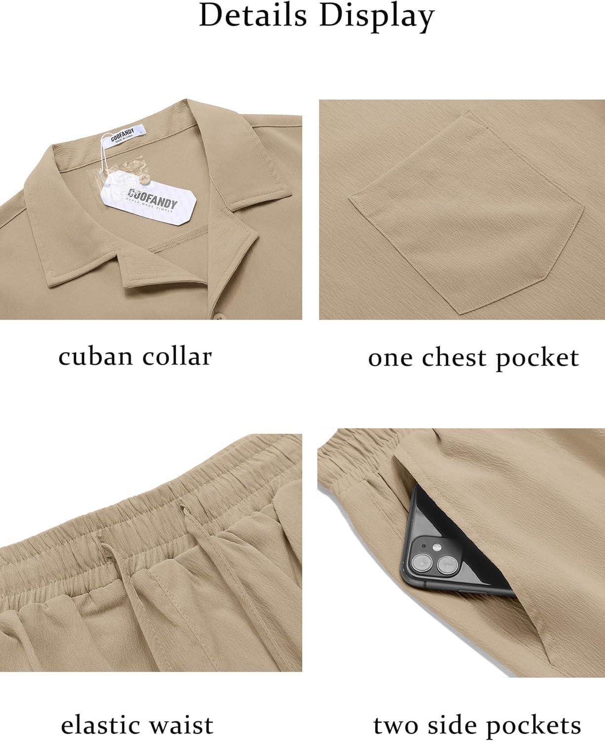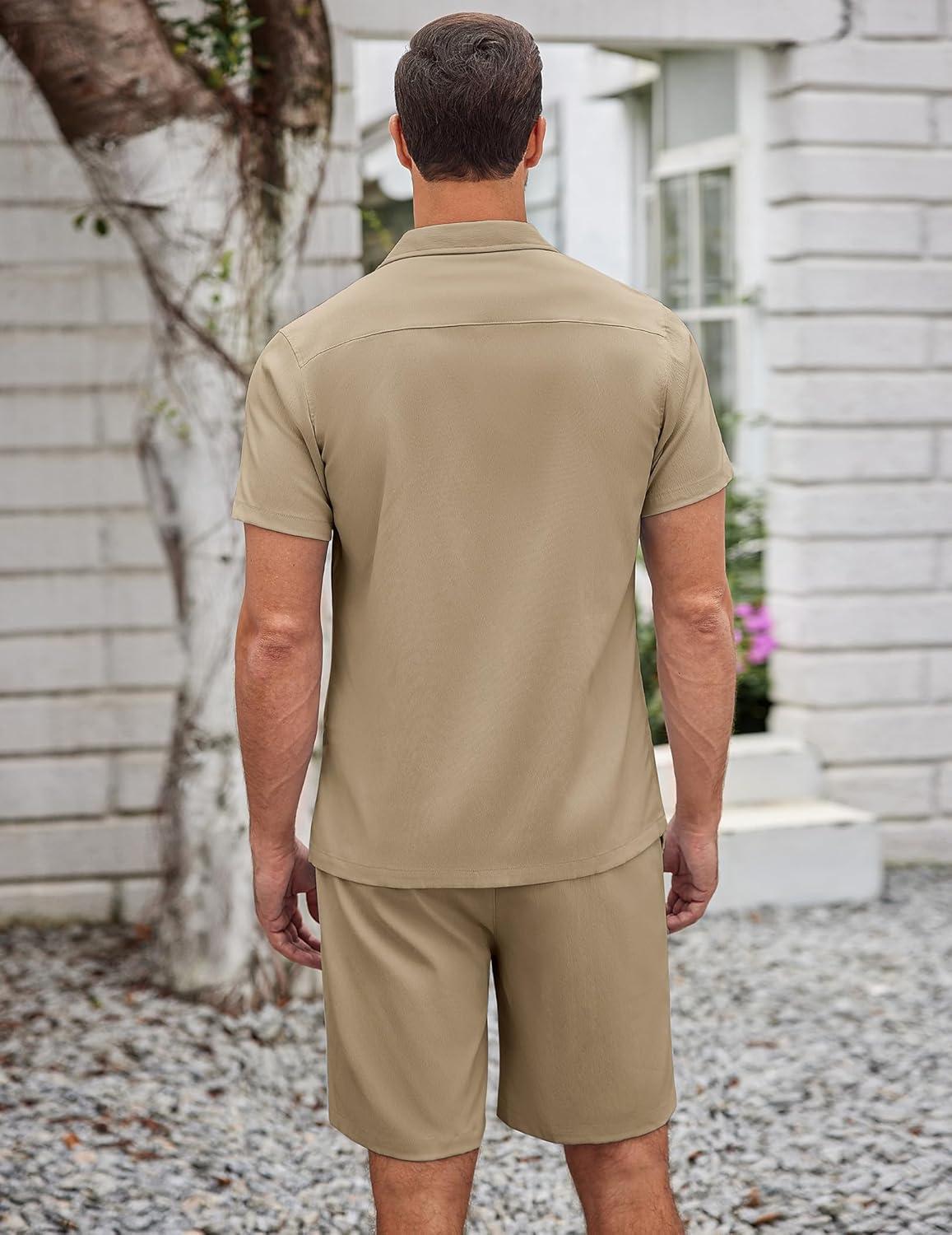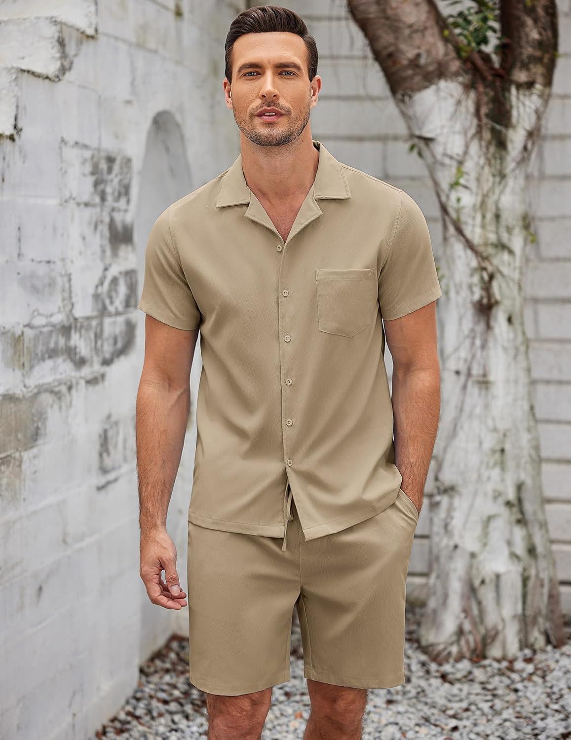 COOFANDY Mens Short Sets 2 Piece Summer Beach Outfits Short Sleeve Shirts and Shorts Sets for Men(Khaki)