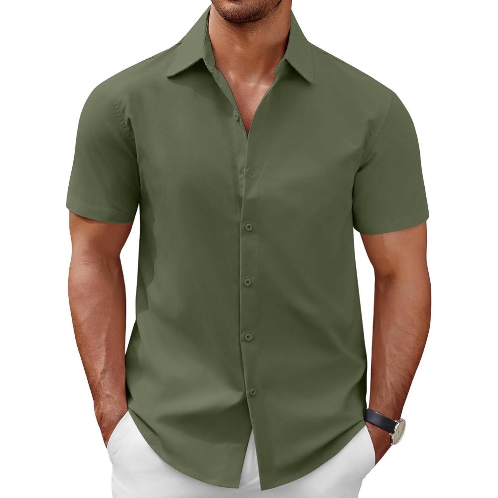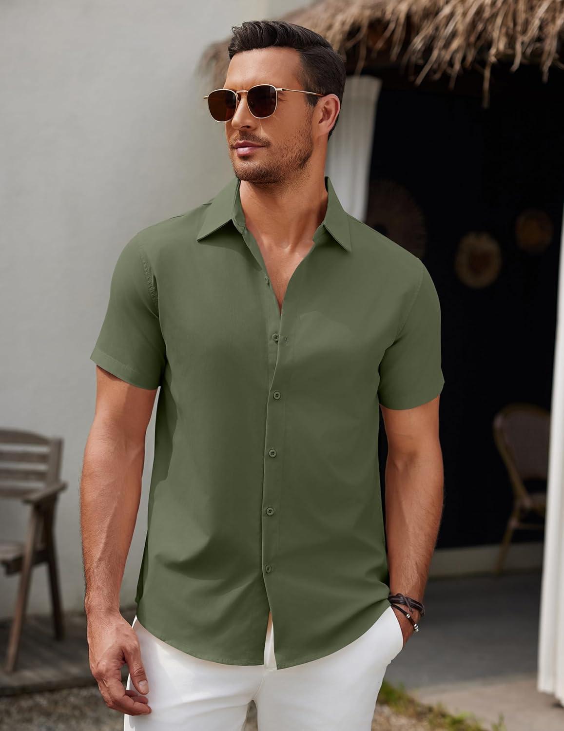 COOFANDY Men's Short Sleeve Button Down Casual Shirts for Men Summer Untucked Shirts(Chive)