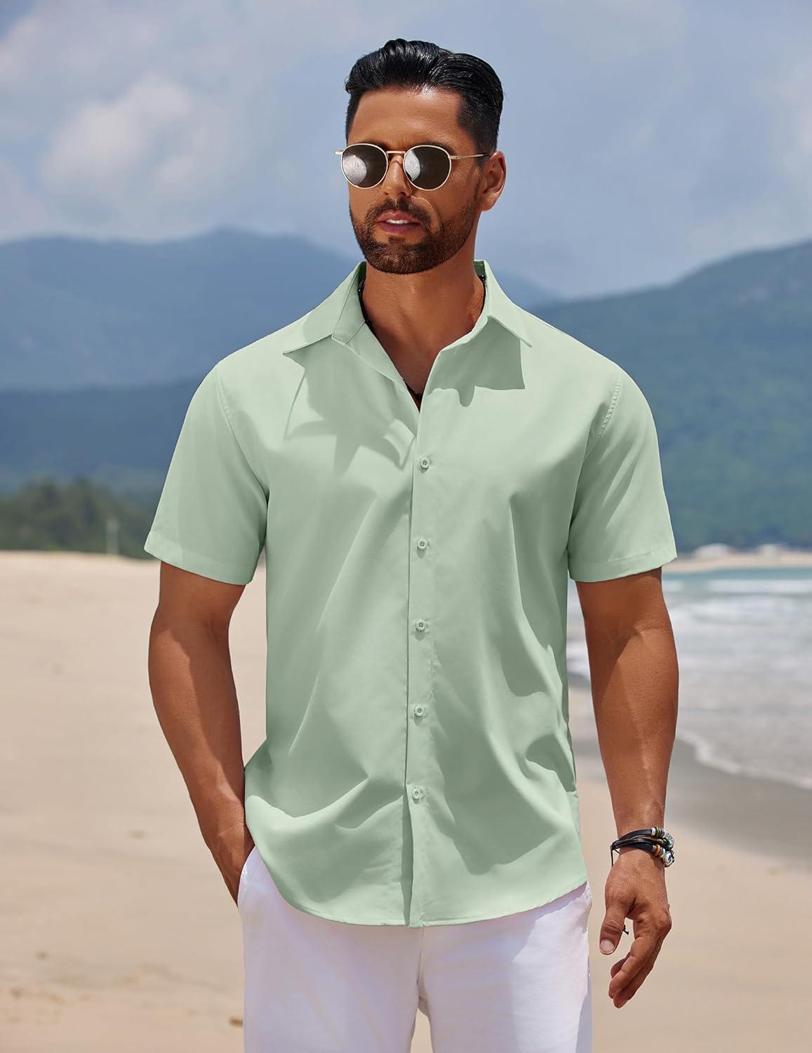 COOFANDY Men's Short Sleeve Button Down Casual Shirts for Men Summer Untucked Shirts(Sea Foam)
