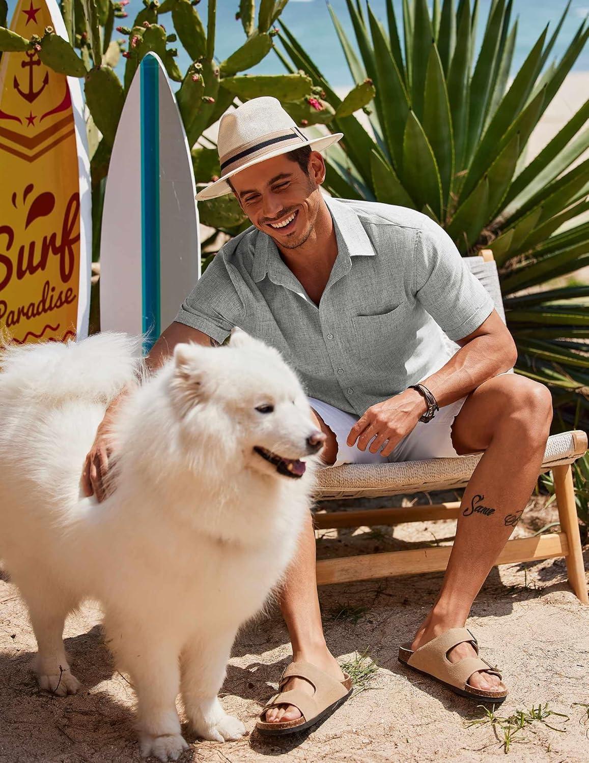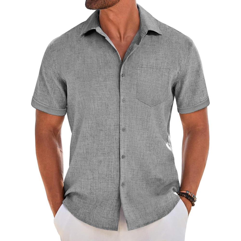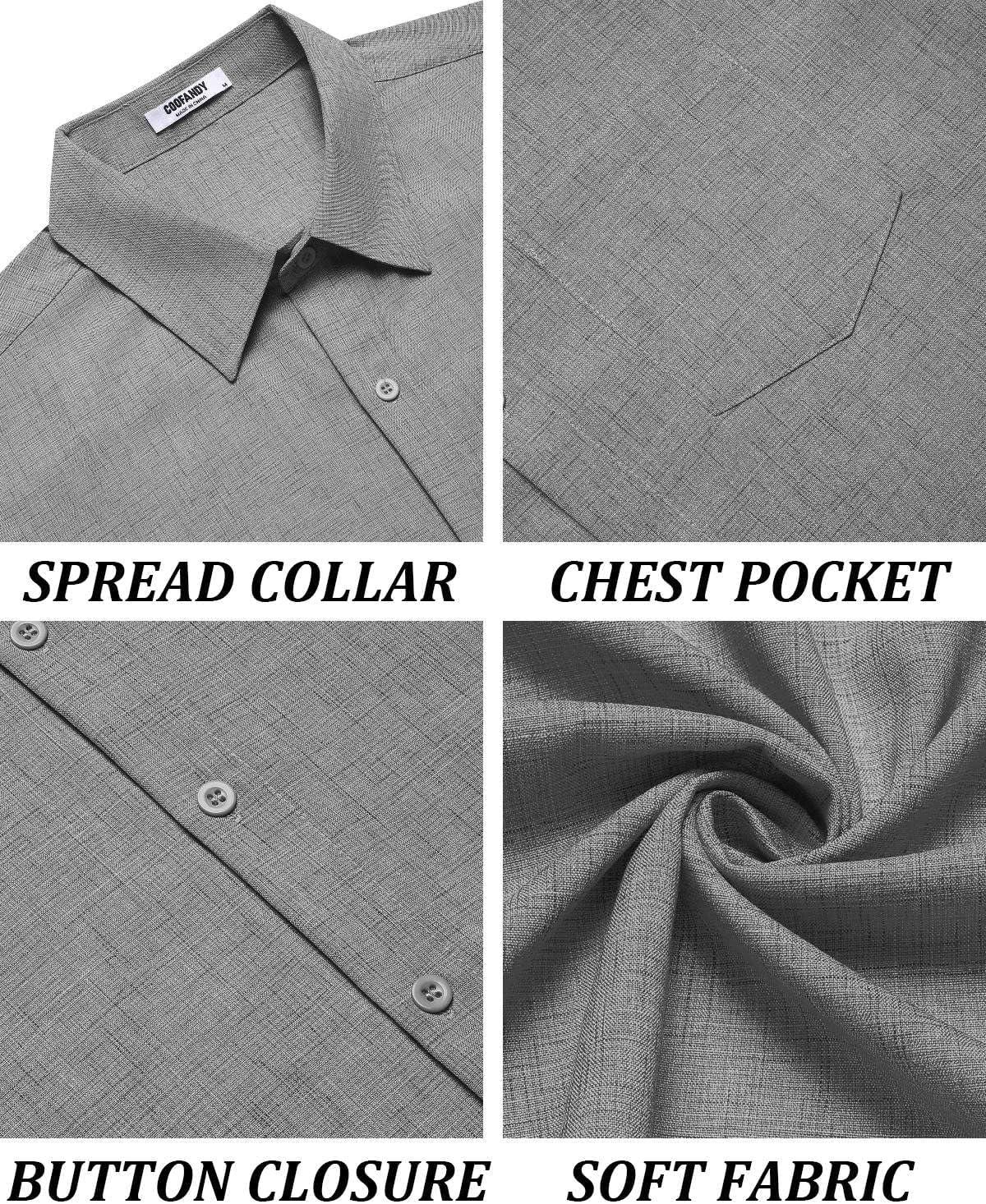COOFANDY Men’s Short Sleeve Button Down Shirt Casual Linen Shirts Summer Beach Vacation Shirt with Pocket(Grey)
