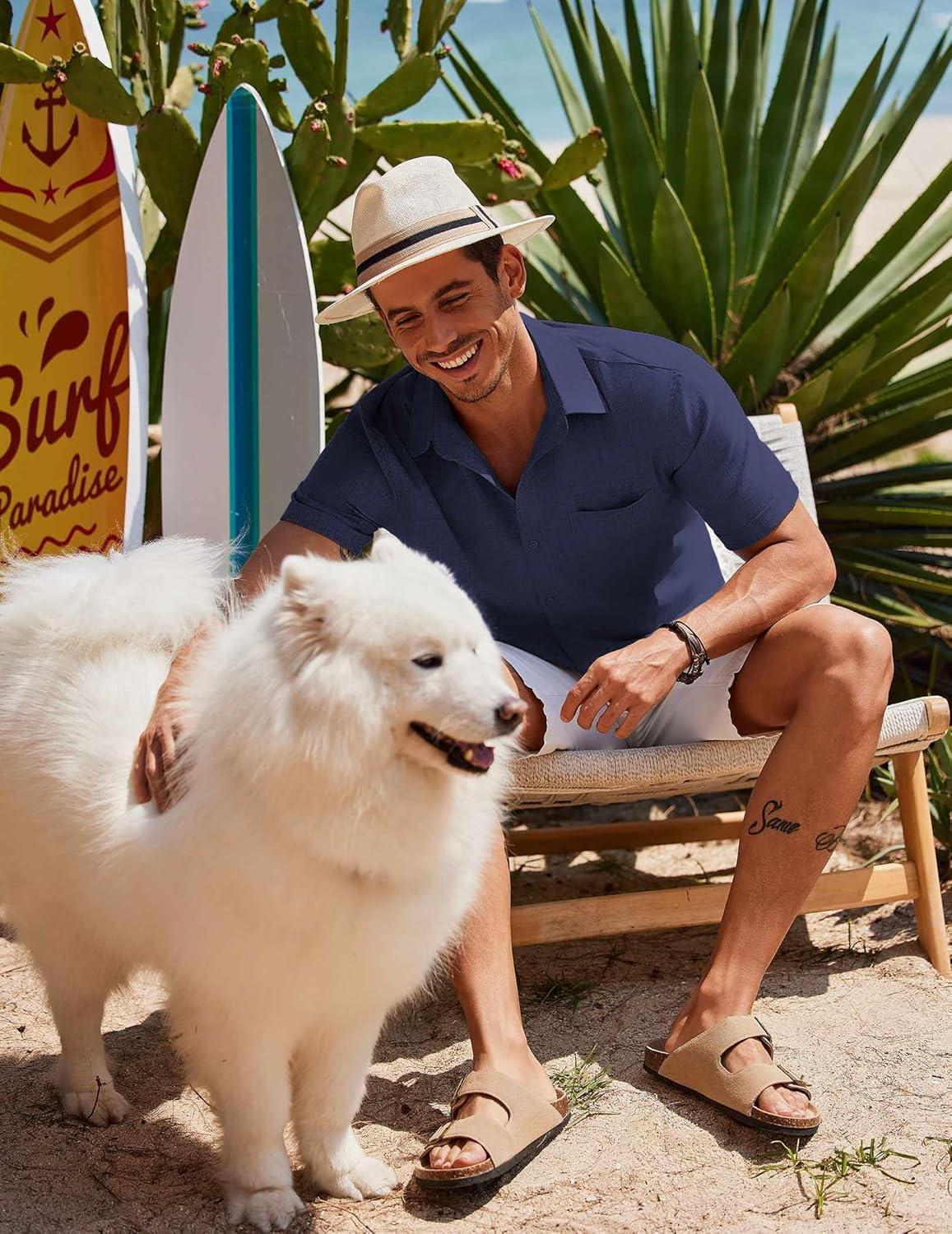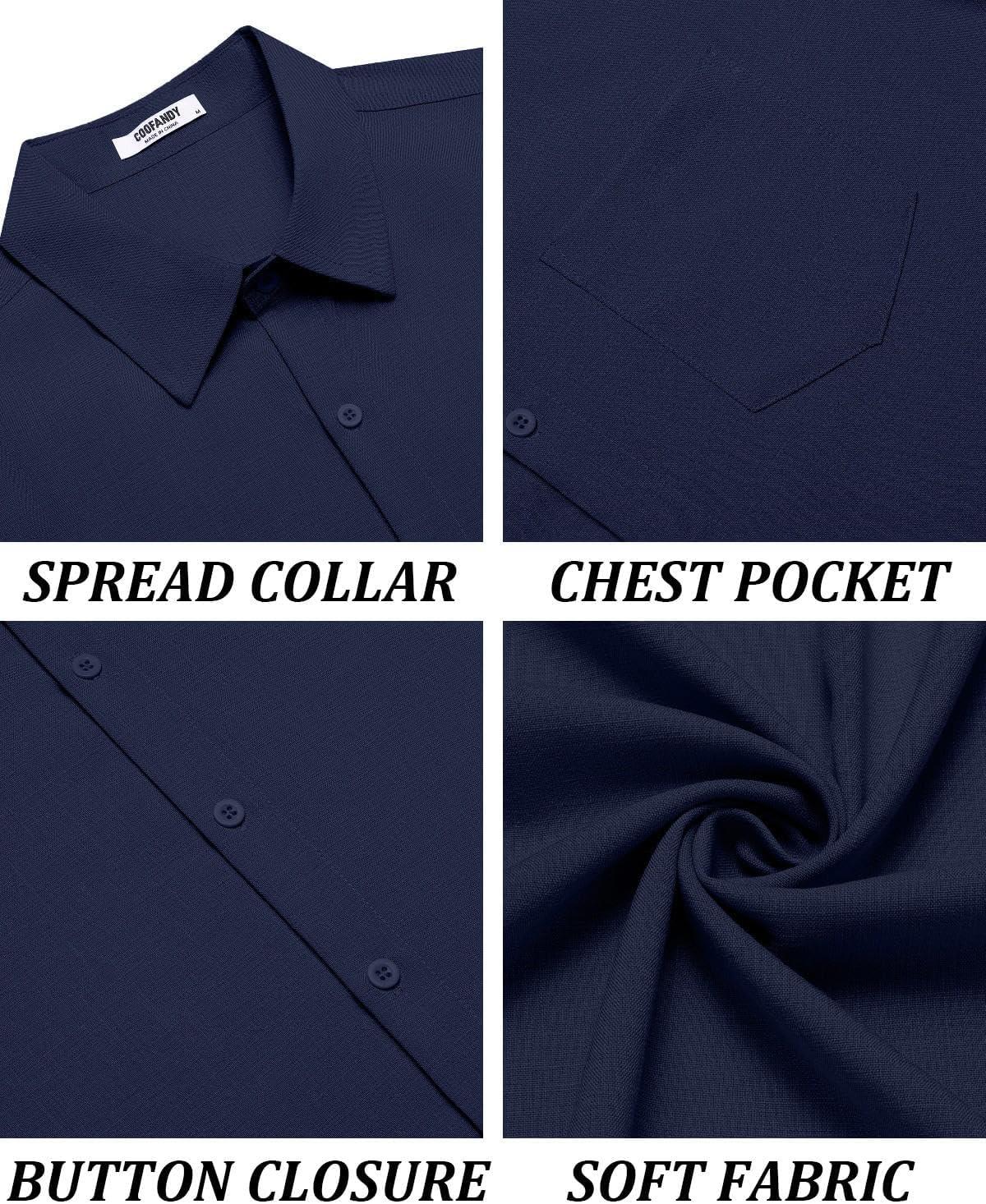COOFANDY Men’s Short Sleeve Button Down Shirt Casual Linen Shirts Summer Beach Vacation Shirt with Pocket(Navy Blue)