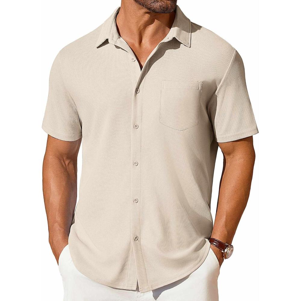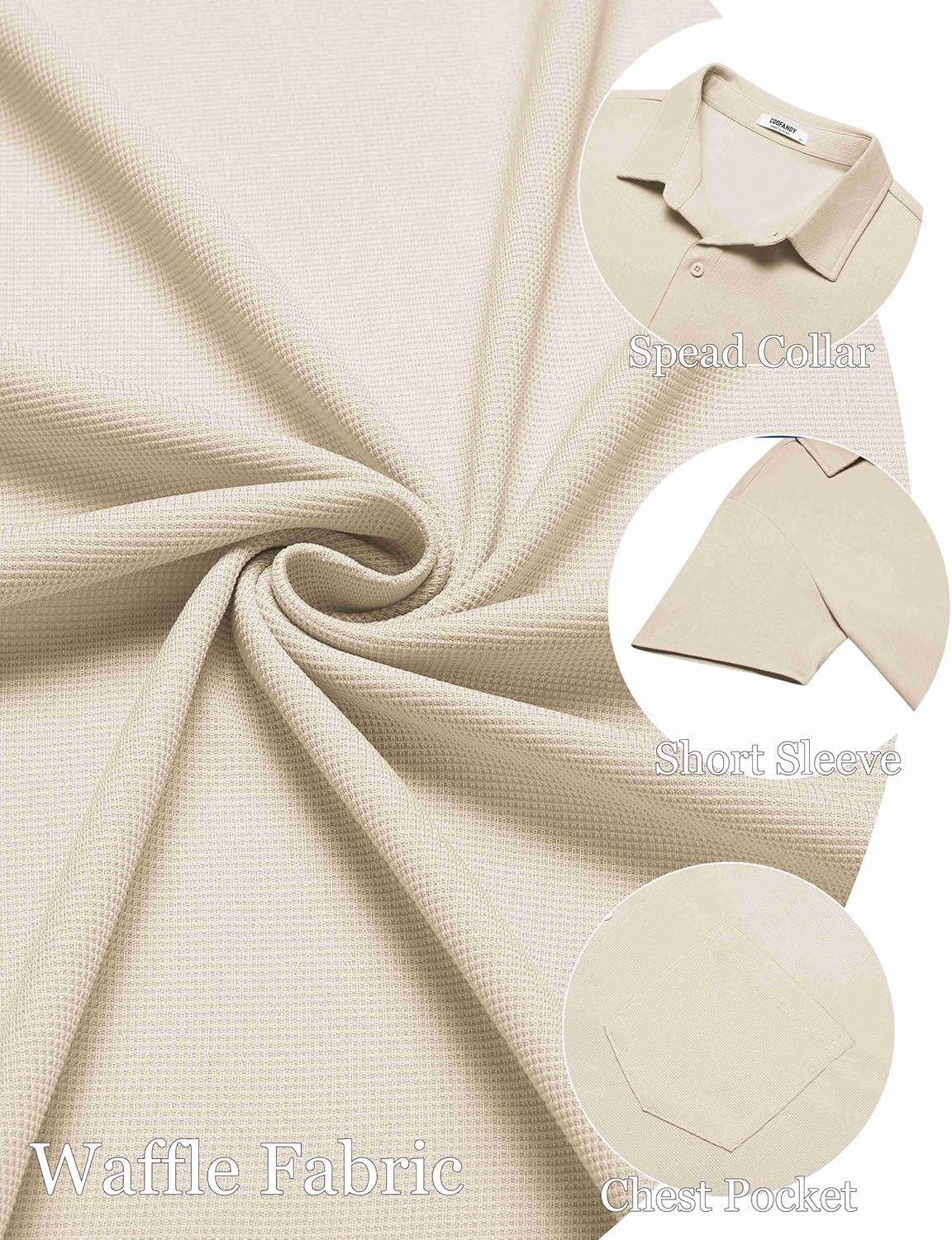 COOFANDY Men's Short Sleeve Button Down Shirt Casual Summer Beach Shirt Waffle Knit Shirts Wrinkle Free Untucked Shirt(Light Khaki)