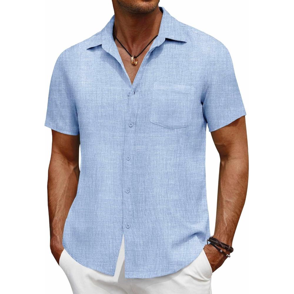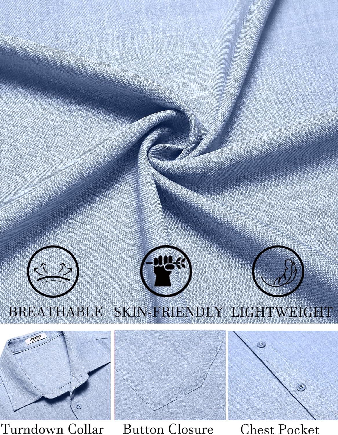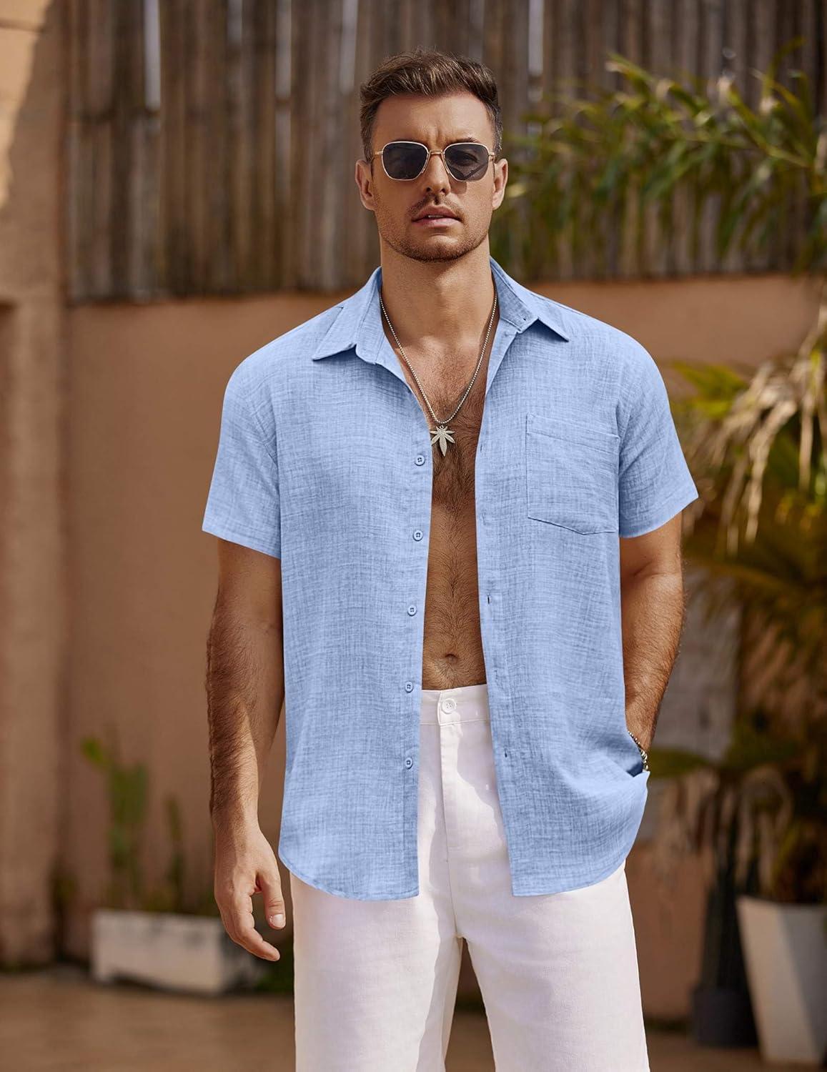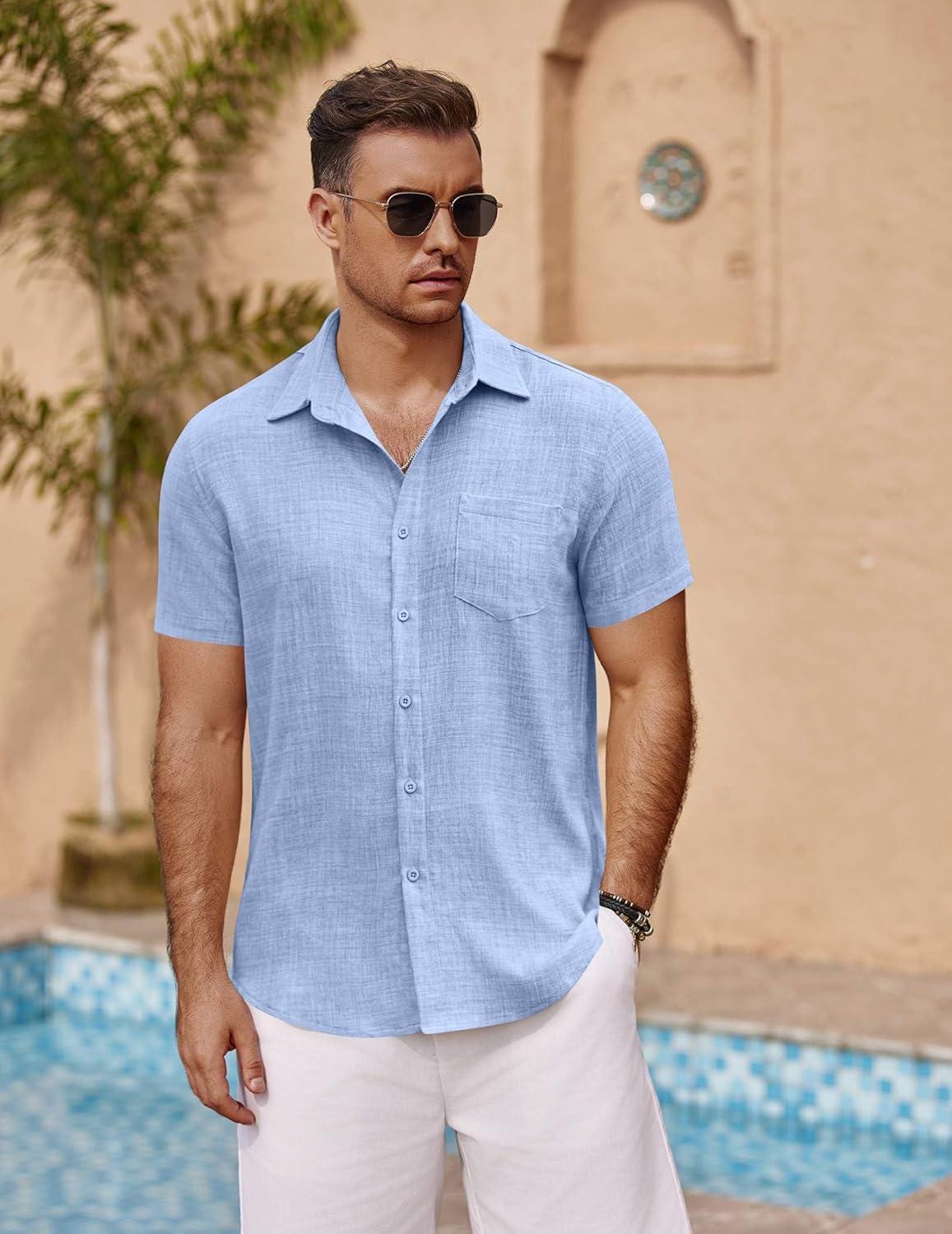 COOFANDY Men’s Short Sleeve Button Down Shirt Casual Summer Beach Untucked Vacation Textured Shirts with Pocket(Angel Falls)