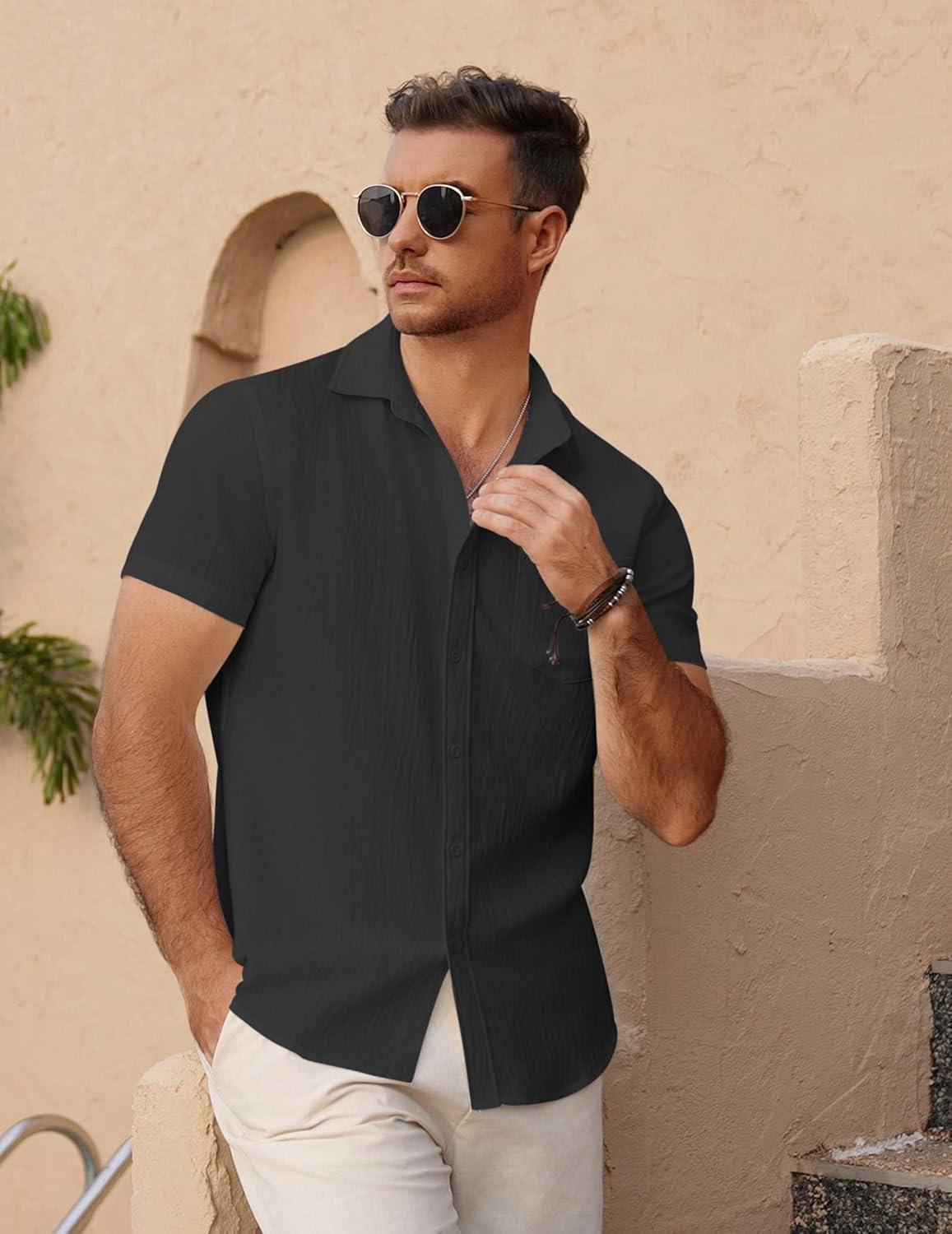 Discover the latest COOFANDY Men’s Short Sleeve Button Down Shirt Casual Summer Beach Untucked Vacation Textured Shirts with Pocket(Black Onyx) from and take advantage of our limited-time introductory offer.