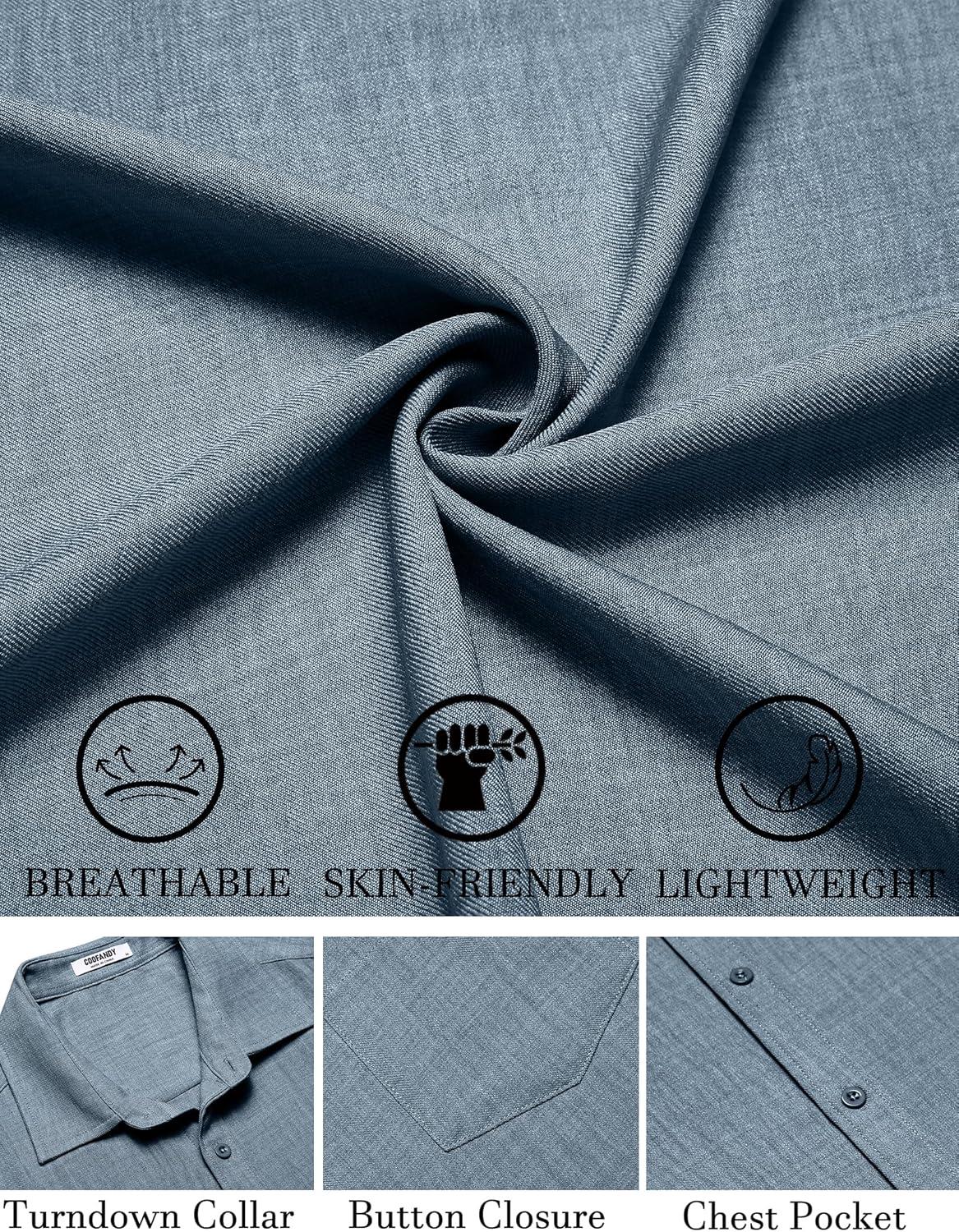 COOFANDY Men’s Short Sleeve Button Down Shirt Casual Summer Beach Untucked Vacation Textured Shirts with Pocket(Granite Gray)