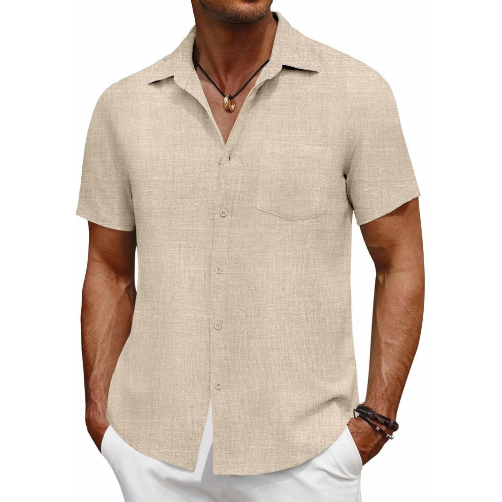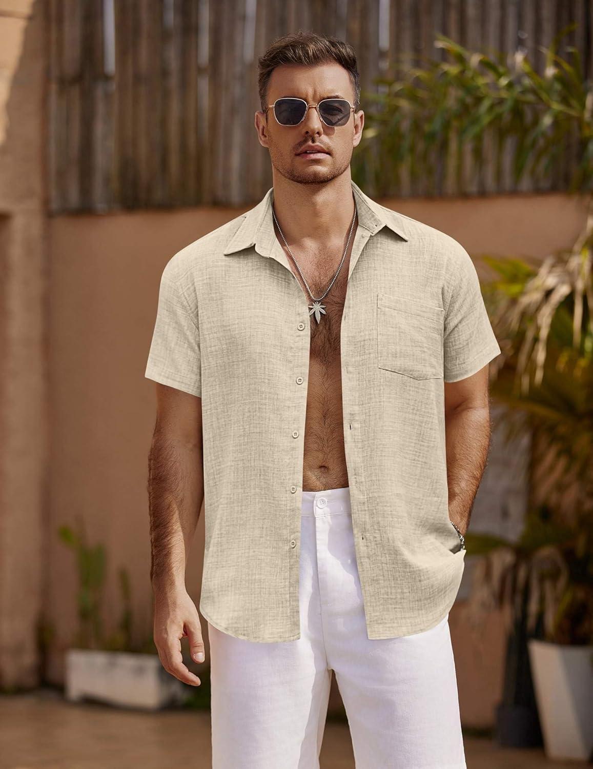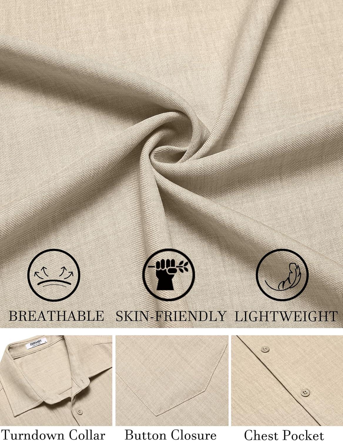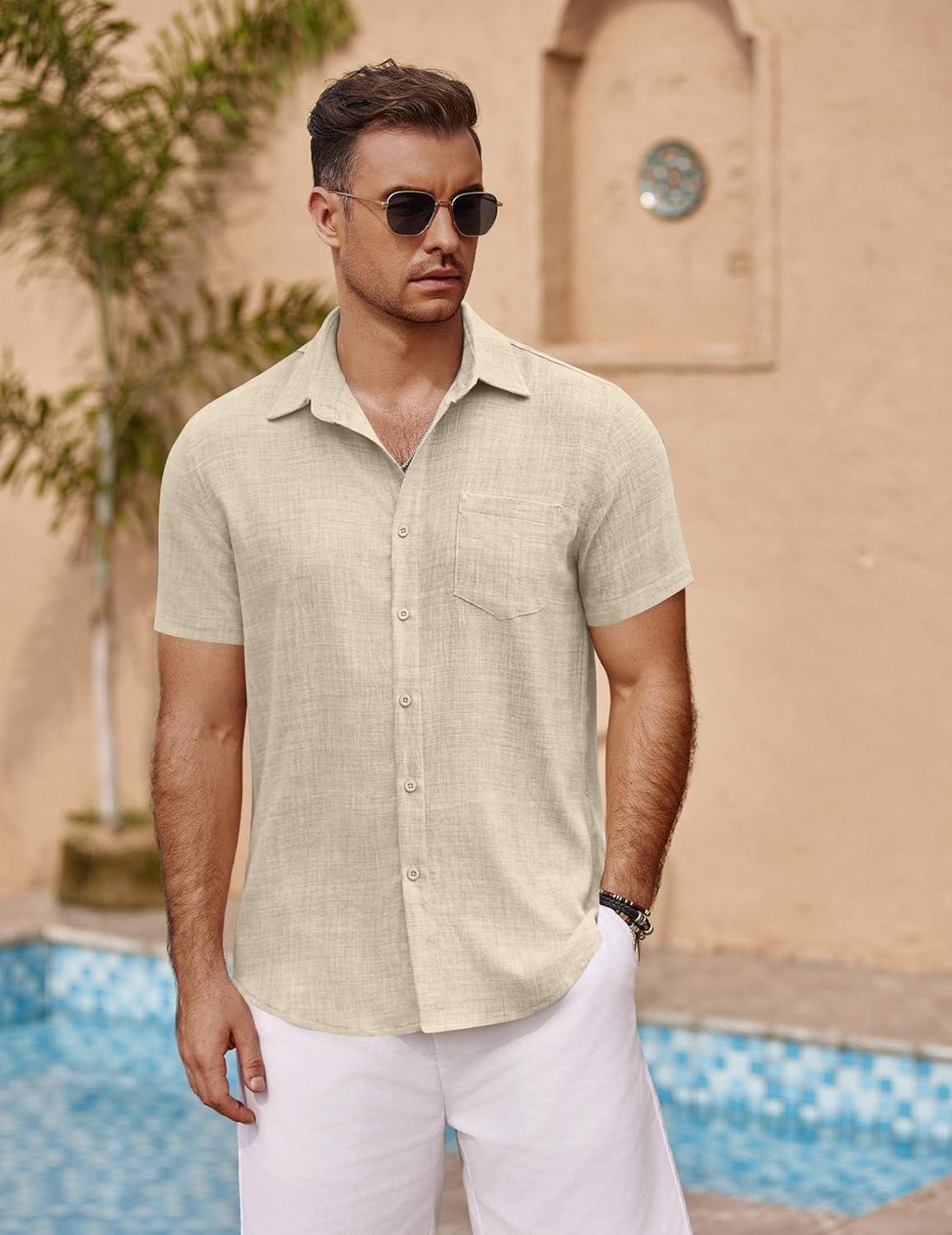 COOFANDY Men’s Short Sleeve Button Down Shirt Casual Summer Beach Untucked Vacation Textured Shirts with Pocket(Acorn)