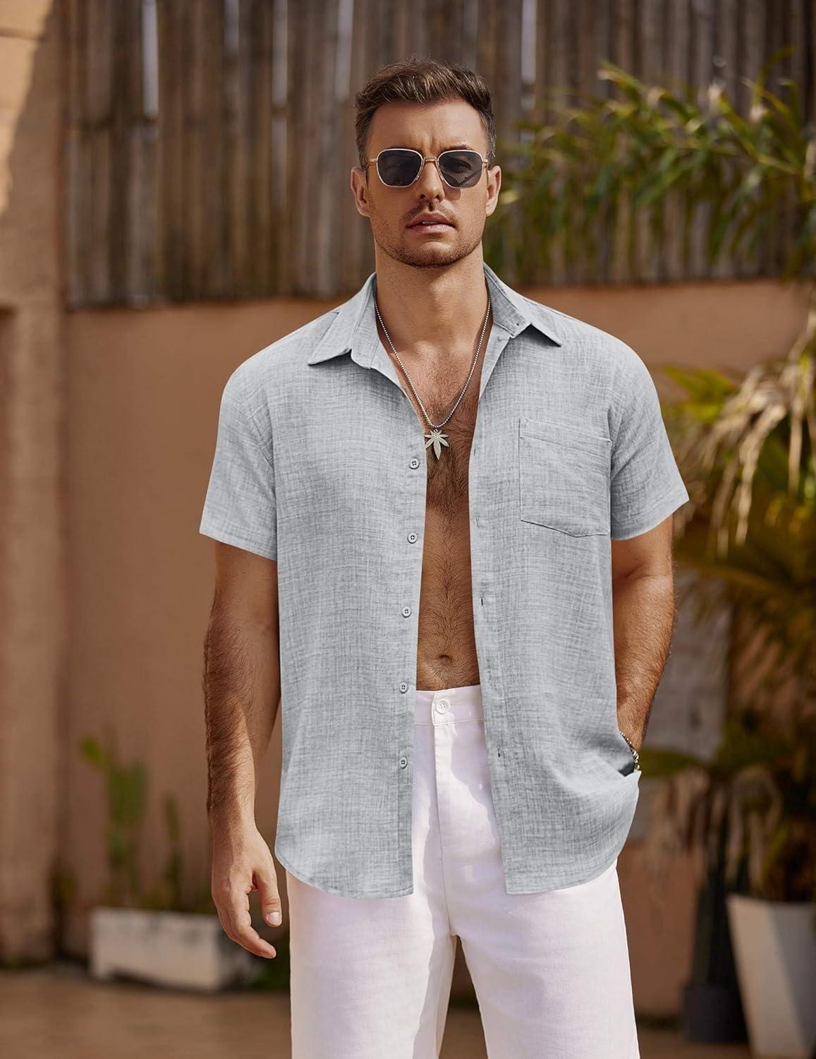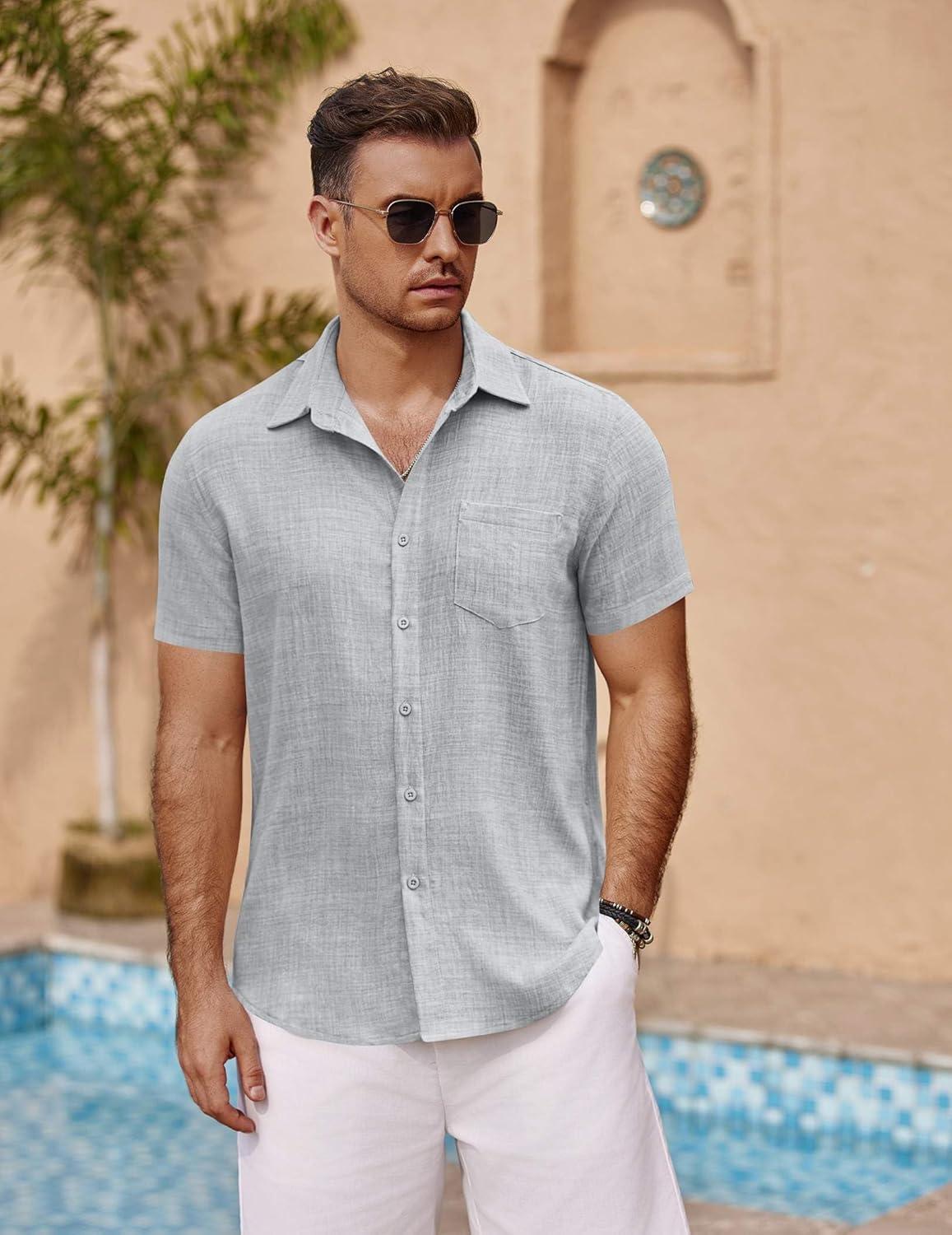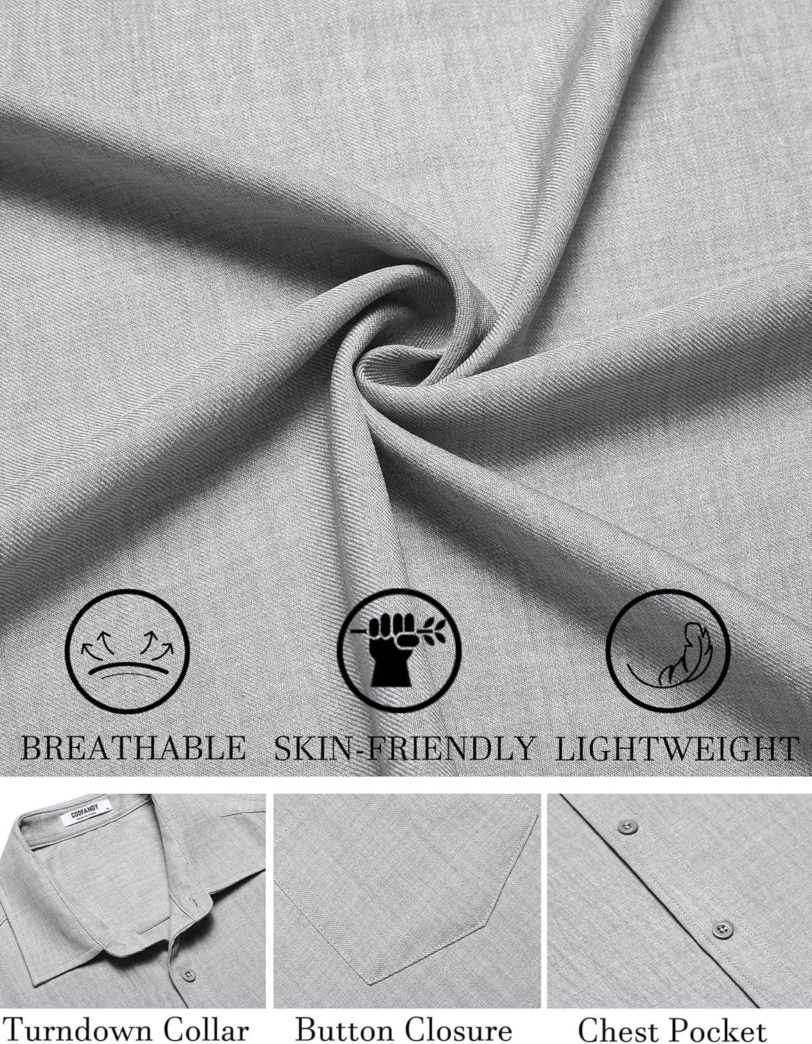 COOFANDY Men’s Short Sleeve Button Down Shirt Casual Summer Beach Untucked Vacation Textured Shirts with Pocket(Quiet Gray)