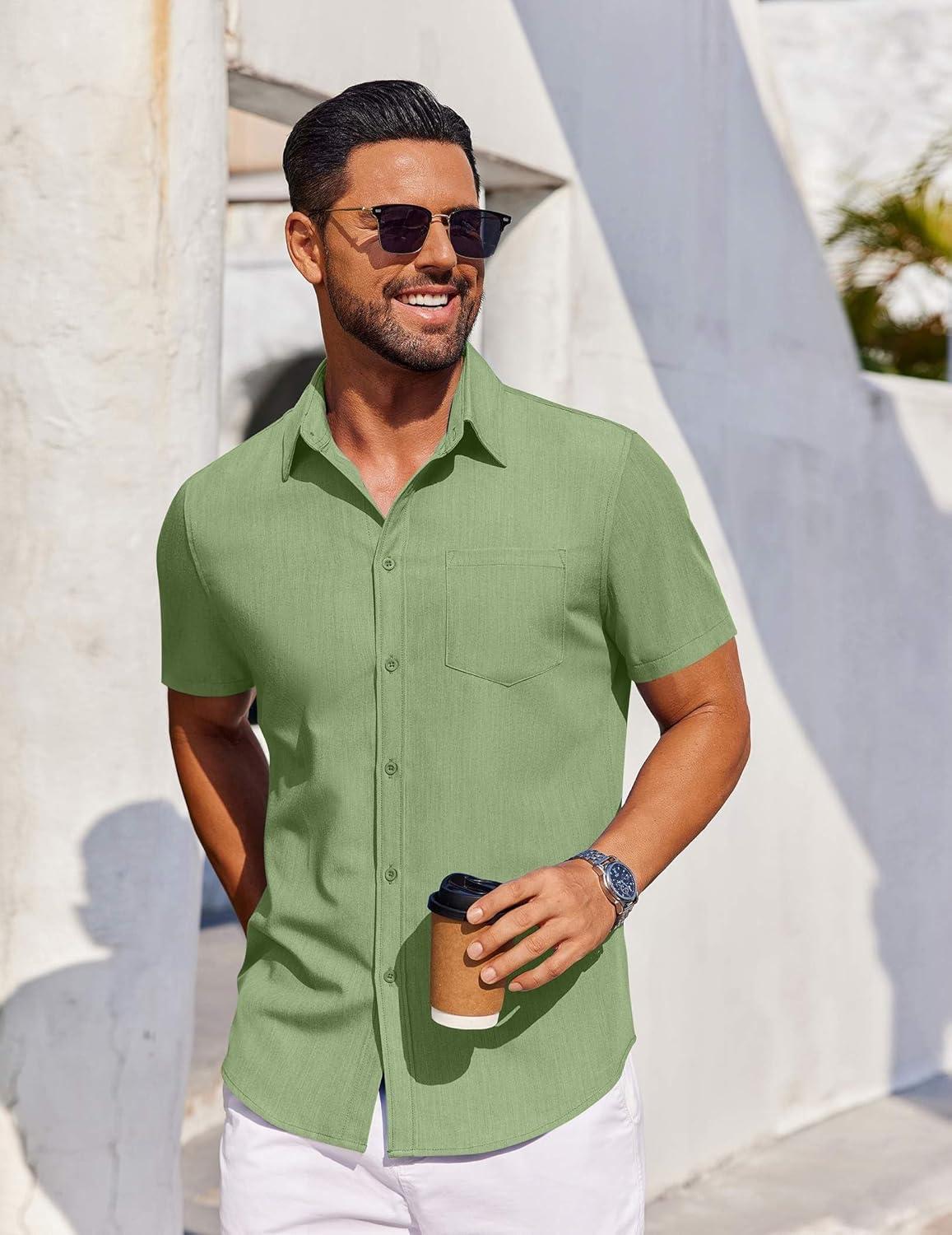 imageCOOFANDY Mens Short Sleeve Button Down Shirt Casual Untucked Dress Shirt Stretch Denim ShirtLight Green