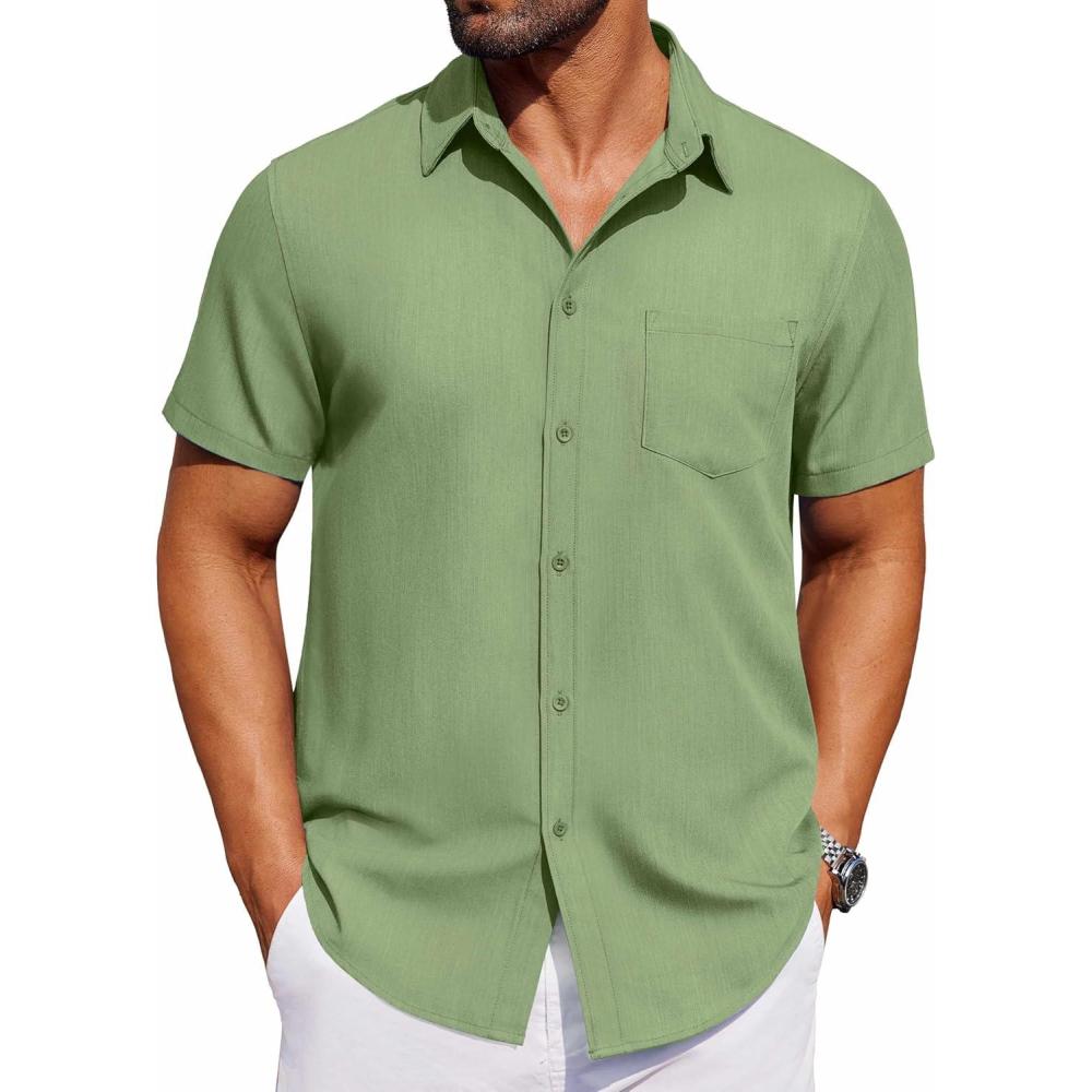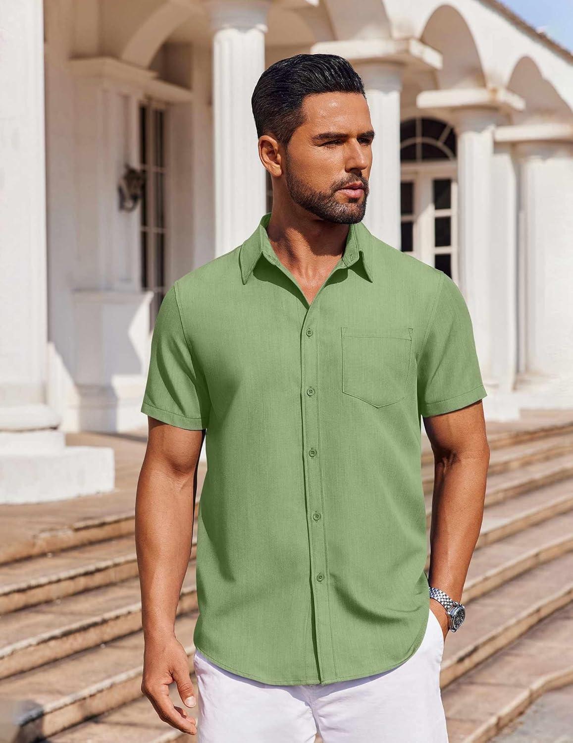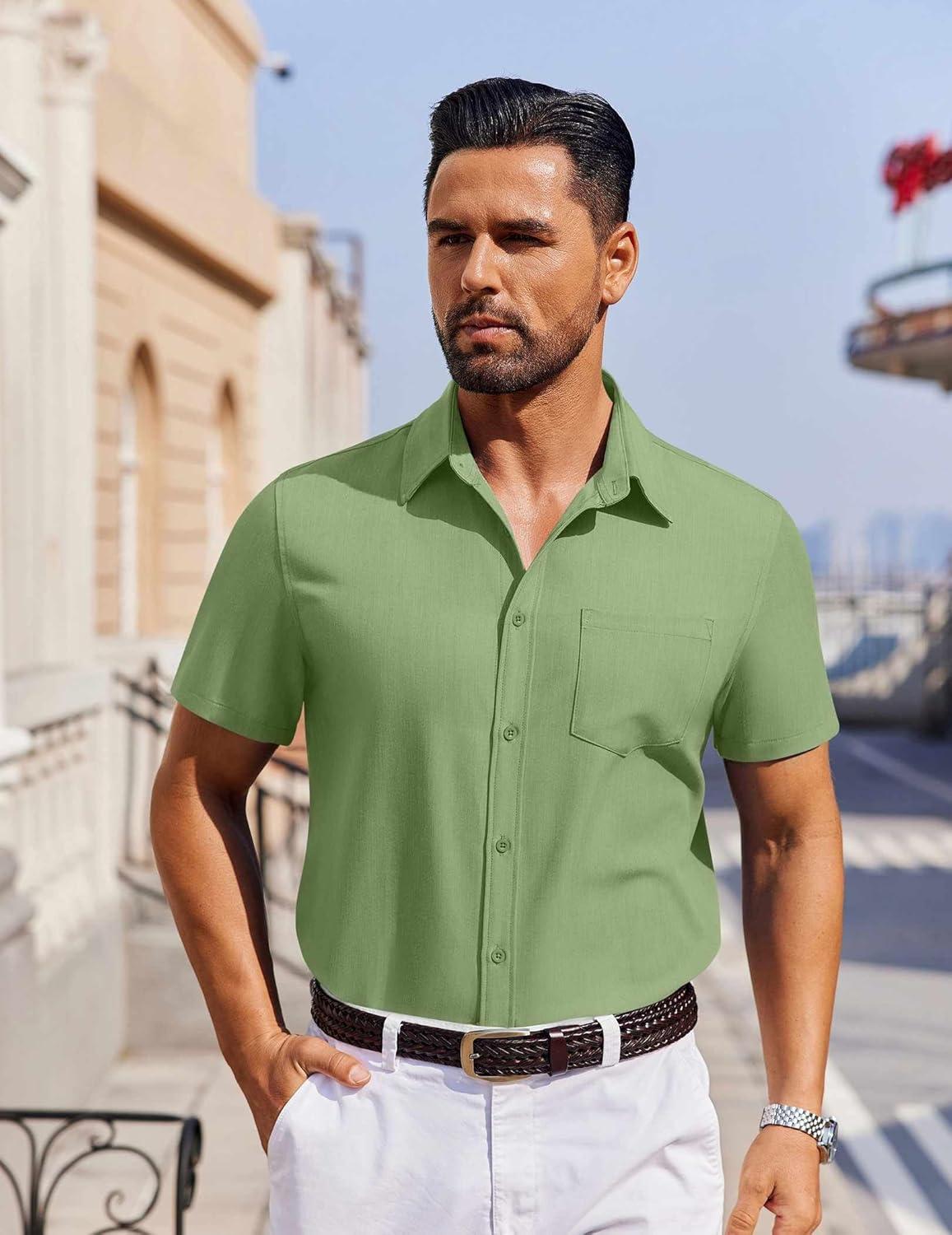 COOFANDY Men's Short Sleeve Button Down Shirt Casual Untucked Dress Shirt Stretch Denim Shirt(Light Green)
