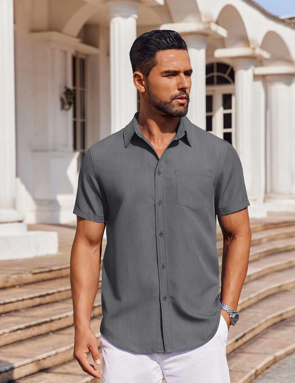 COOFANDY Men’s Short Sleeve Button Down Shirt Casual Untucked Dress Shirt Stretch Denim Shirt(Light Grey)