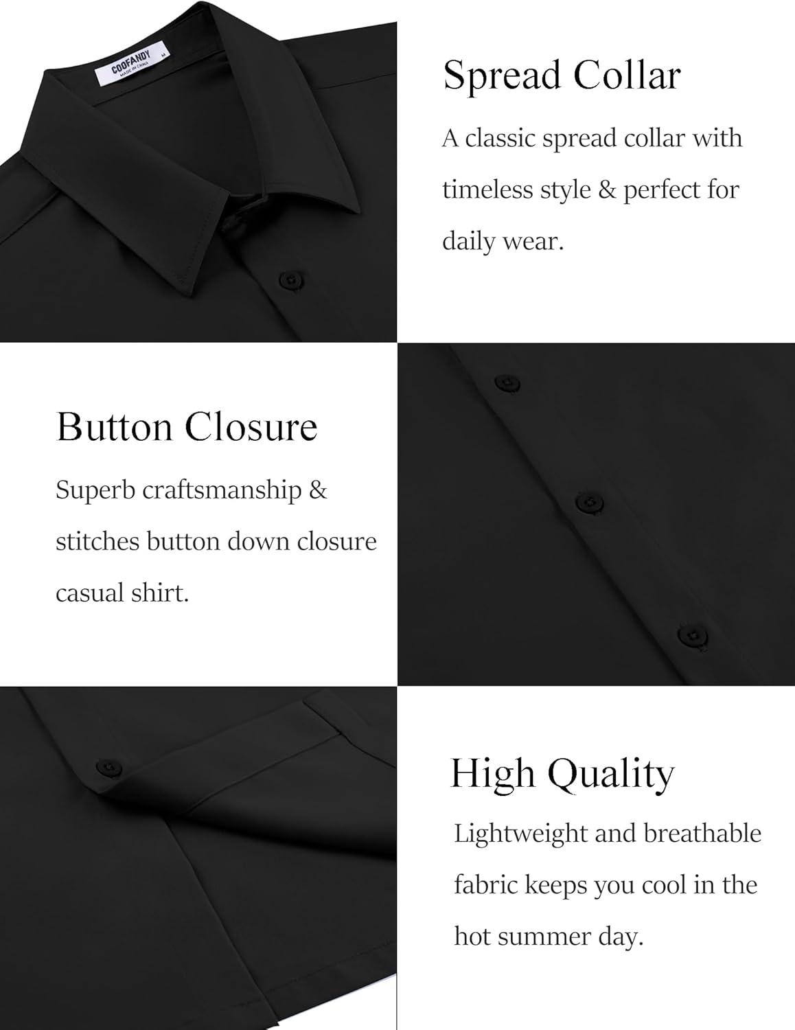 COOFANDY Mens Short Sleeve Button Down Shirt Lightweight Wrinkle Free Untucked Dress Shirts(Black)