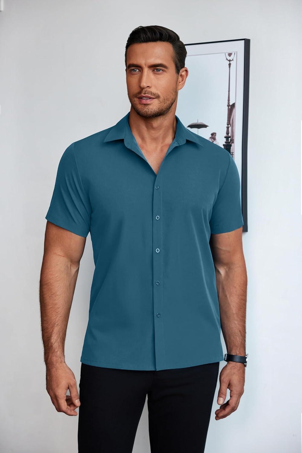 COOFANDY Mens Short Sleeve Button Down Shirt Lightweight Wrinkle Free Untucked Dress Shirts(Dark Blue)