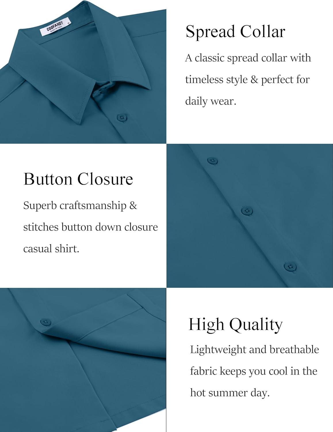 COOFANDY Mens Short Sleeve Button Down Shirt Lightweight Wrinkle Free Untucked Dress Shirts(Light Grey)