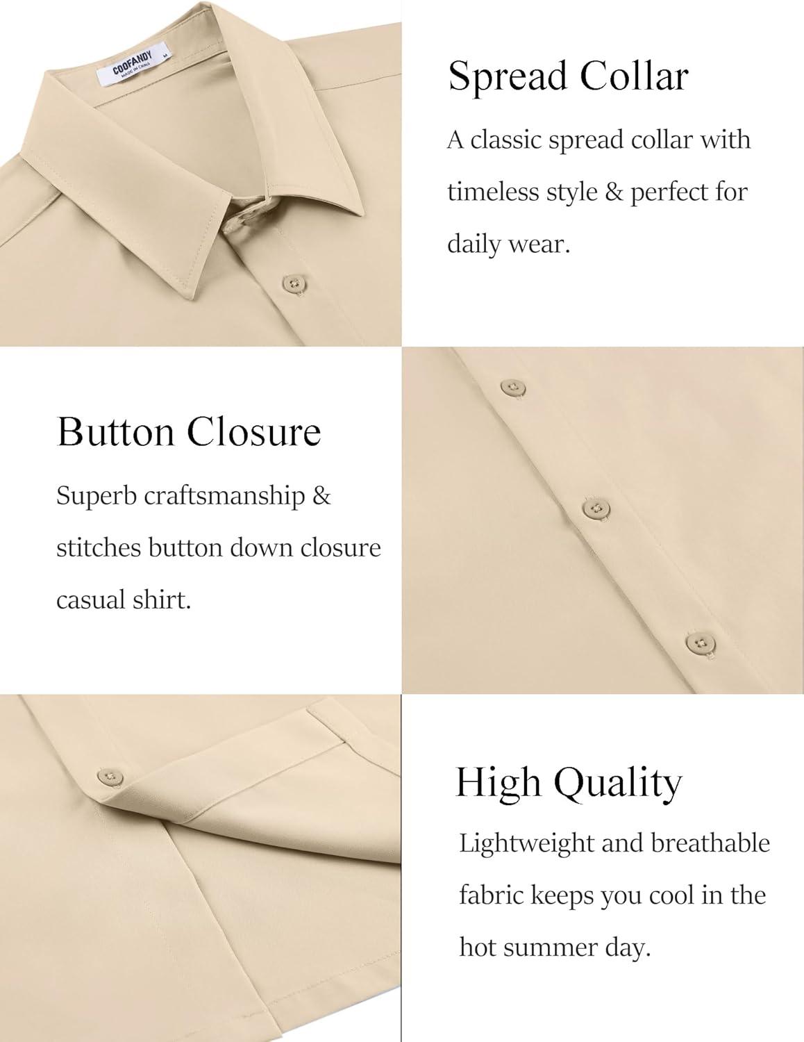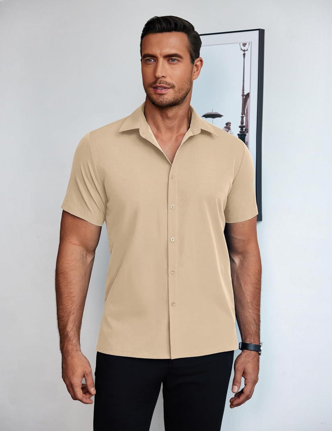 COOFANDY Mens Short Sleeve Button Down Shirt Lightweight Wrinkle Free Untucked Dress Shirts(Light Coffee)