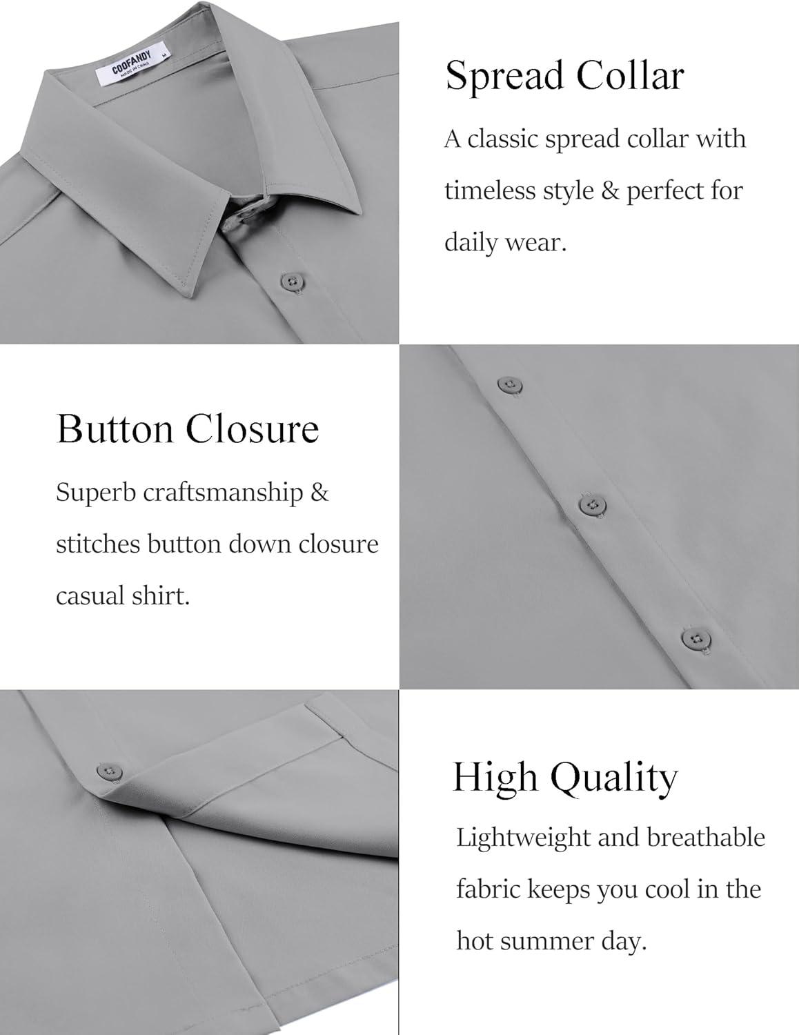 COOFANDY Mens Short Sleeve Button Down Shirt Lightweight Wrinkle Free Untucked Dress Shirts(Light Grey)