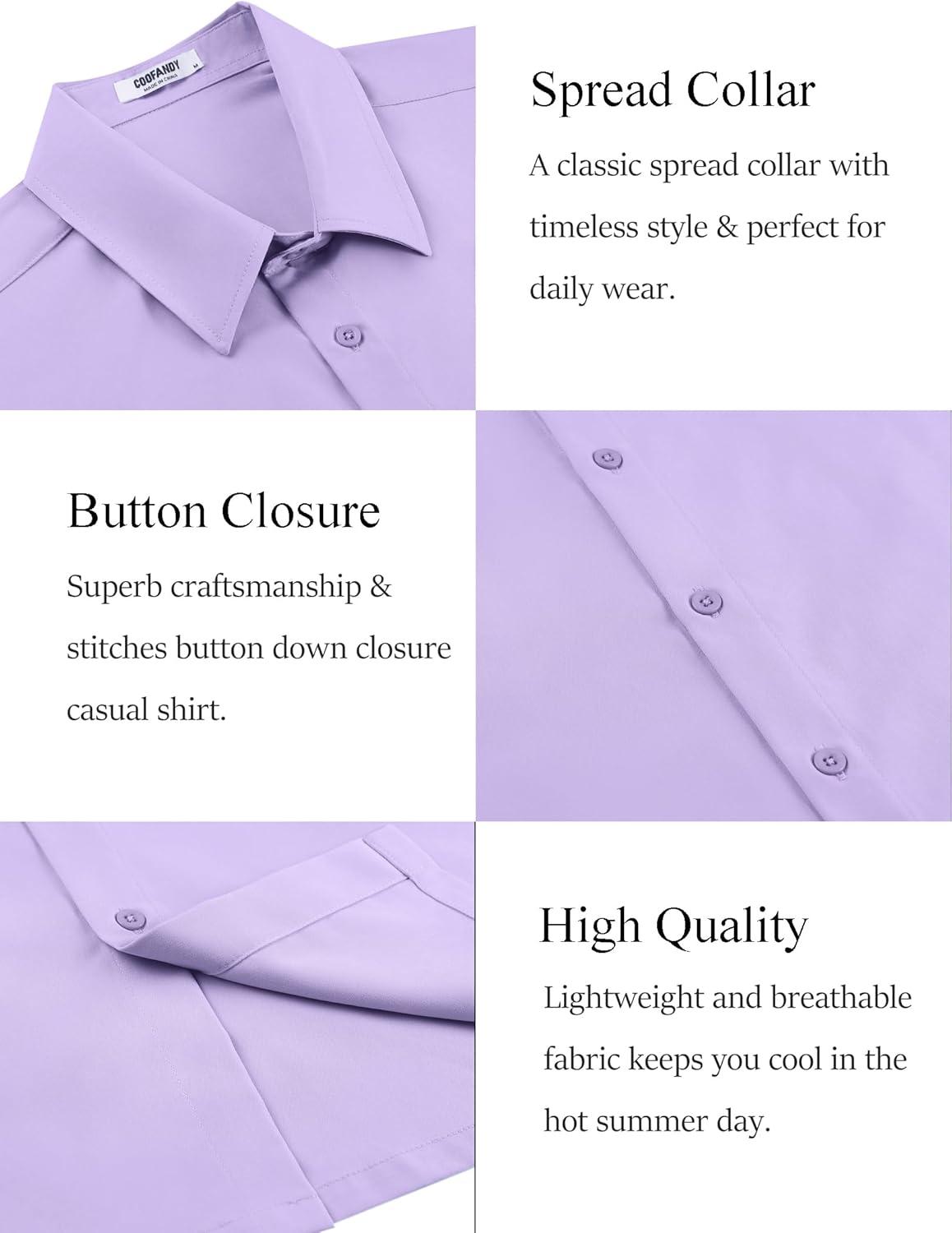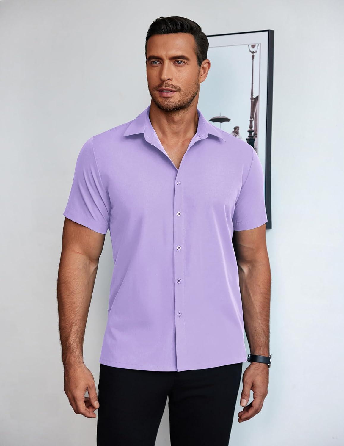 COOFANDY Mens Short Sleeve Button Down Shirt Lightweight Wrinkle Free Untucked Dress Shirts(Light Purple)