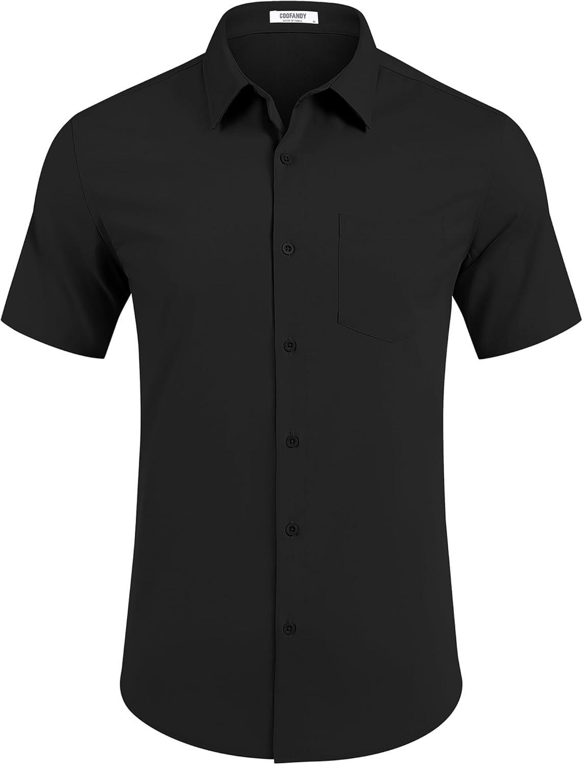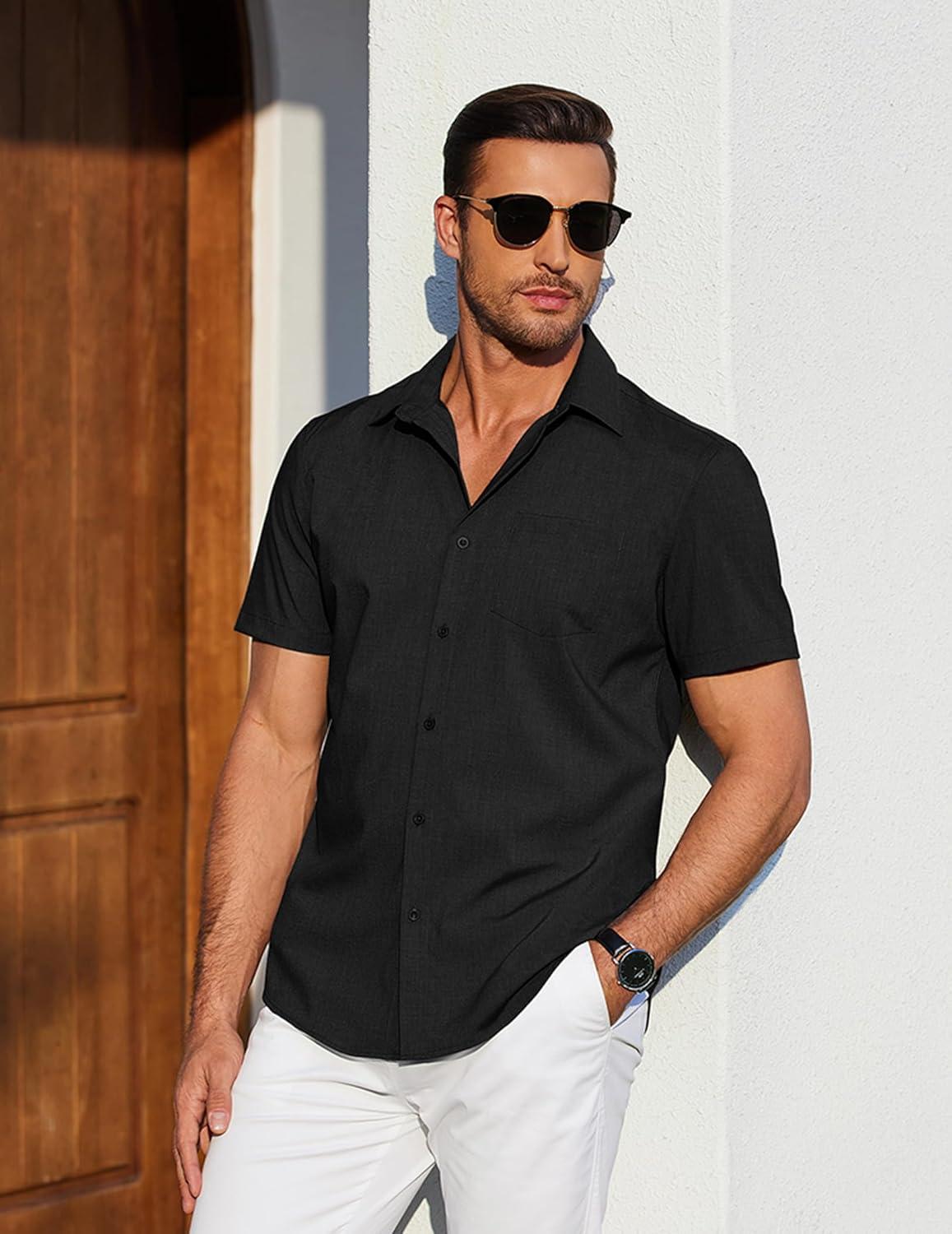 COOFANDY Men’s Short Sleeve Button Down Shirt with Pocket(Black)