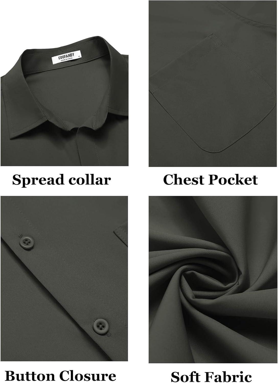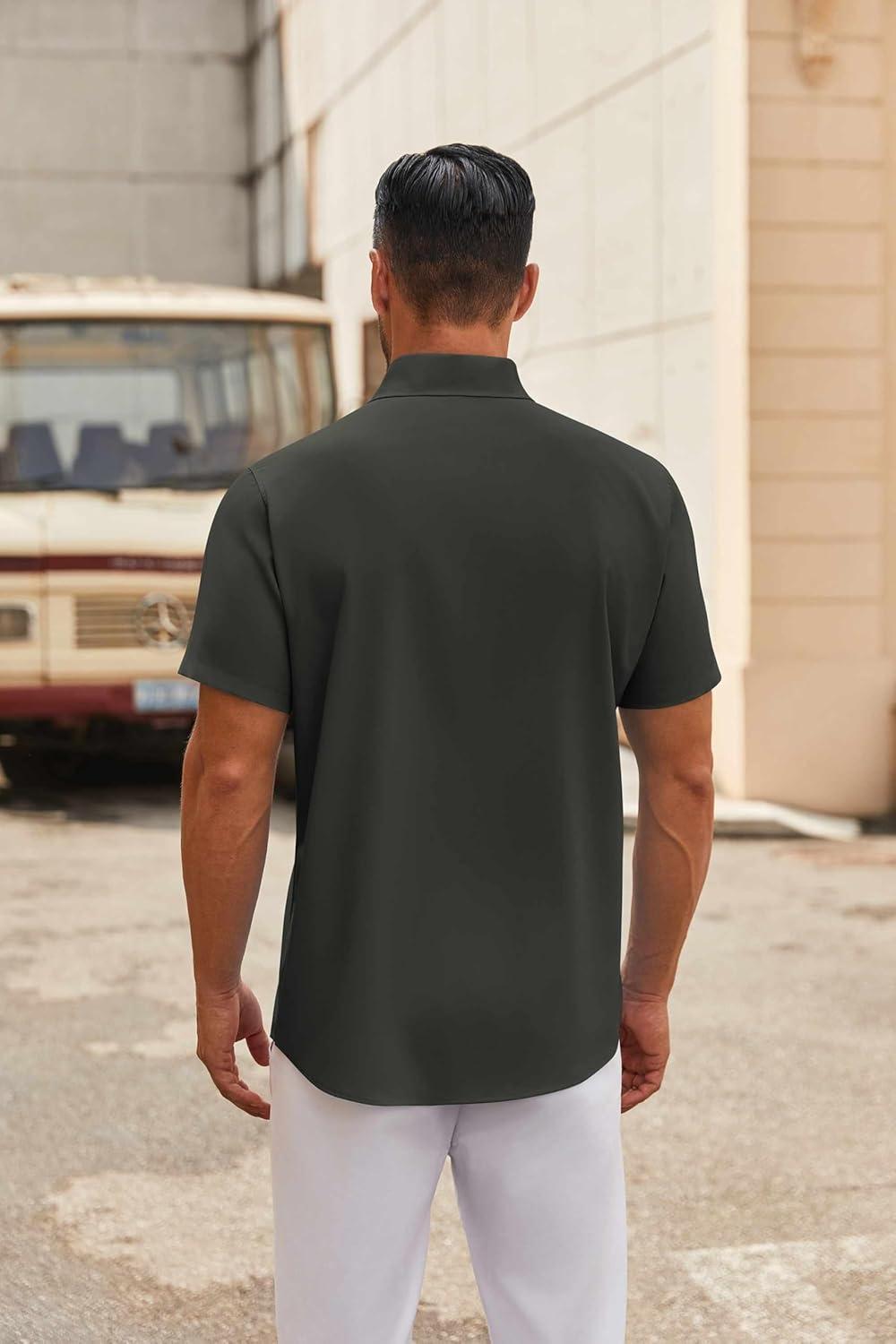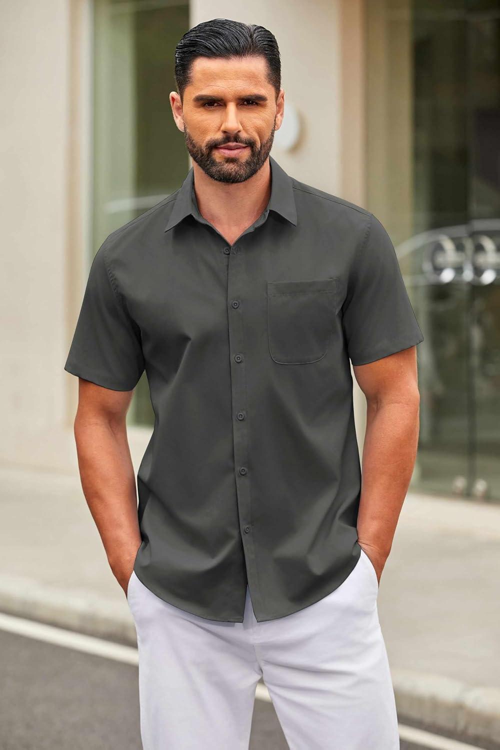 COOFANDY Mens Short Sleeve Button Down Shirts Casual Dress Shirt Untucked Shirts with Pocket(Dark Grey)