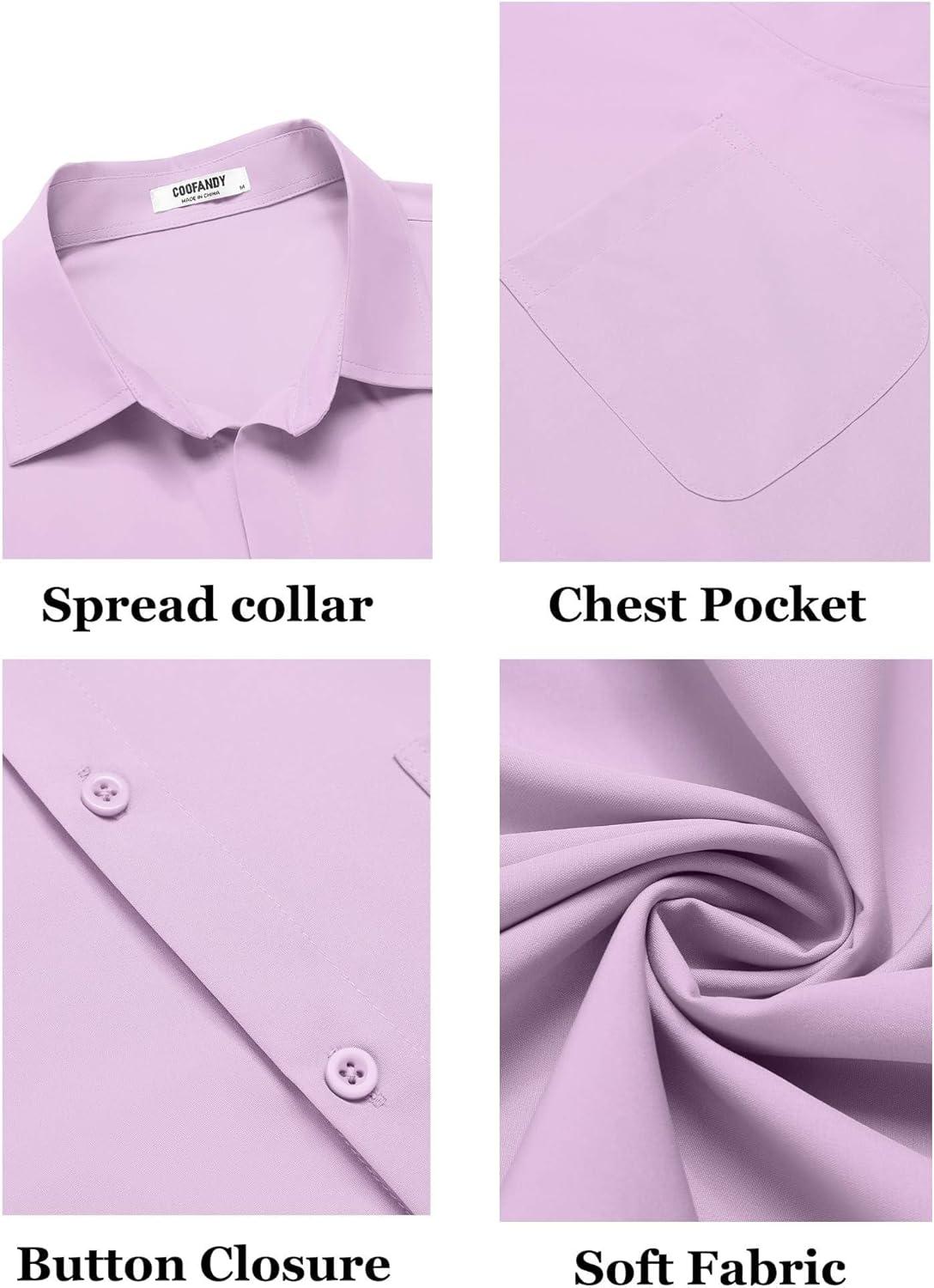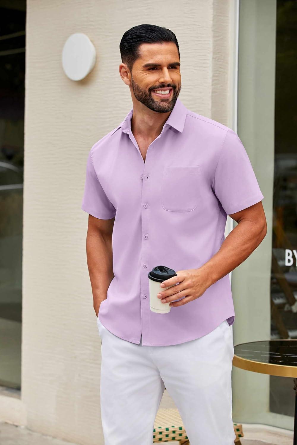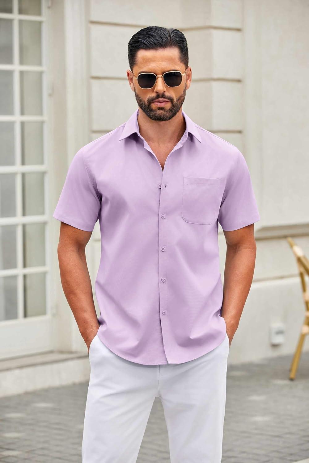 COOFANDY Mens Short Sleeve Button Down Shirts Casual Dress Shirt Untucked Shirts with Pocket(Lavender)